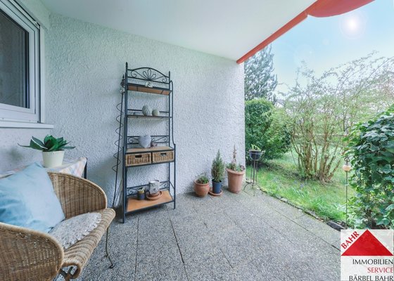 Der helle Wohnbereich bildet das Herzstück der Wohnung und bietet direkten Zugang zur kleinen, gemütlichen Terrasse mit Westausrichtung. Es ist praktisch geschnitten und geräumig groß. Hier lassen sich entspannte Nachmittage und sonnige Abendstunden in angenehmer Atmosphäre genießen.