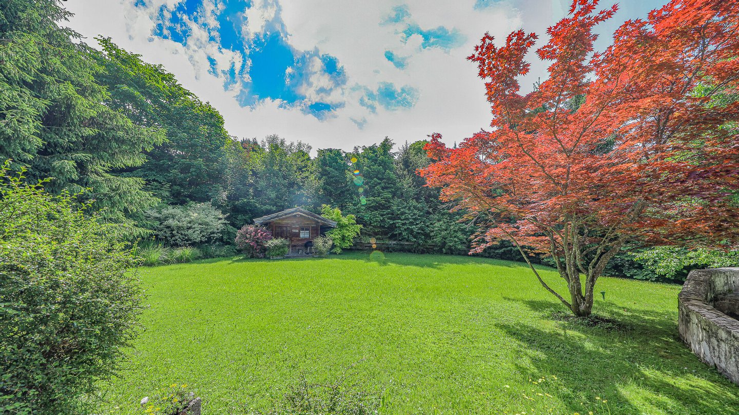Auf dem großen Grundstück befindet sich auch noch ein im Stile einer Almhütte gehaltenes Gerätehaus.