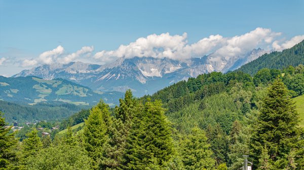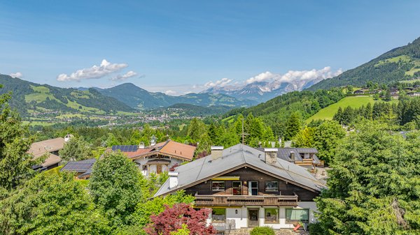 Von dieser Ebene hat man vollen Blick auf den Hahnenkamm, den gesamten Wilden Kaiser und die Bichlalm.