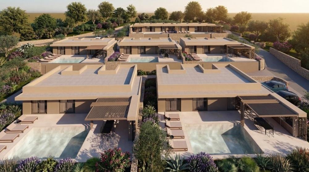 Das Projekt erstreckt sich über einen natürlich terrassierten Hang mit einer Höhe von 328 m bis 335 m. Die sieben Villen erstrecken sich über drei sanft abfallende Ebenen. Jedes Grundstück ist vollständig abgetrennt und bietet somit absolute Privatsphäre. Das Anwesen ist über zwei Gemeindestraßen erschlossen und von einer großzügig gestalteten Grünanlage umgeben.