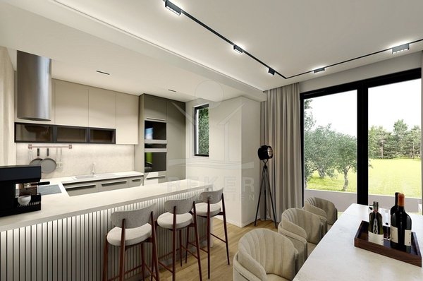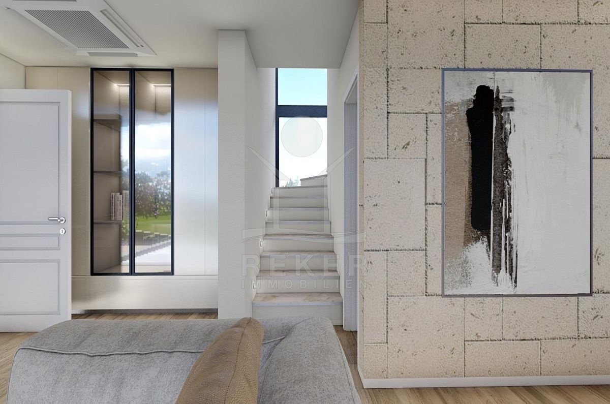 Diese neue Luxusvilla auf der Insel Krk, nahe Malinska, verbindet Ruhe, Grün und eine angenehm private Atmosphäre. Das Meer ist rund 2,2 km entfernt. Der Meerblick betont die attraktive Position zusätzlich. Zwei Parkplätze am Haus machen die Ankunft
