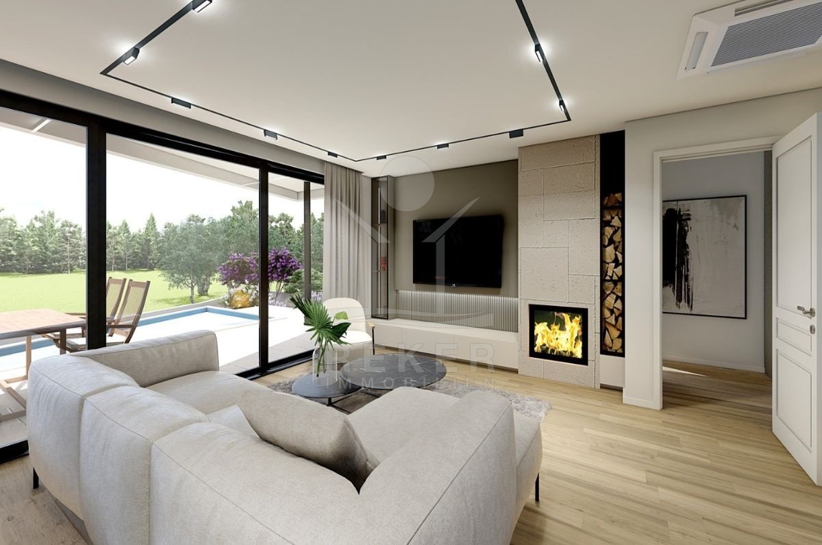 Diese neue Luxusvilla auf der Insel Krk, nahe Malinska, verbindet Ruhe, Grün und eine angenehm private Atmosphäre. Das Meer ist rund 2,2 km entfernt. Der Meerblick betont die attraktive Position zusätzlich. Zwei Parkplätze am Haus machen die Ankunft und den Alltag bequem. Auf dem 544 m² großen Grundstück erwartet Sie ein privater Außenbereich mit Swimmingpool und überdachter Terrasse. Pool, Meerblick und das ruhige Umfeld schaffen einen stimmigen Rahmen für entspannte Stunden im Freien.