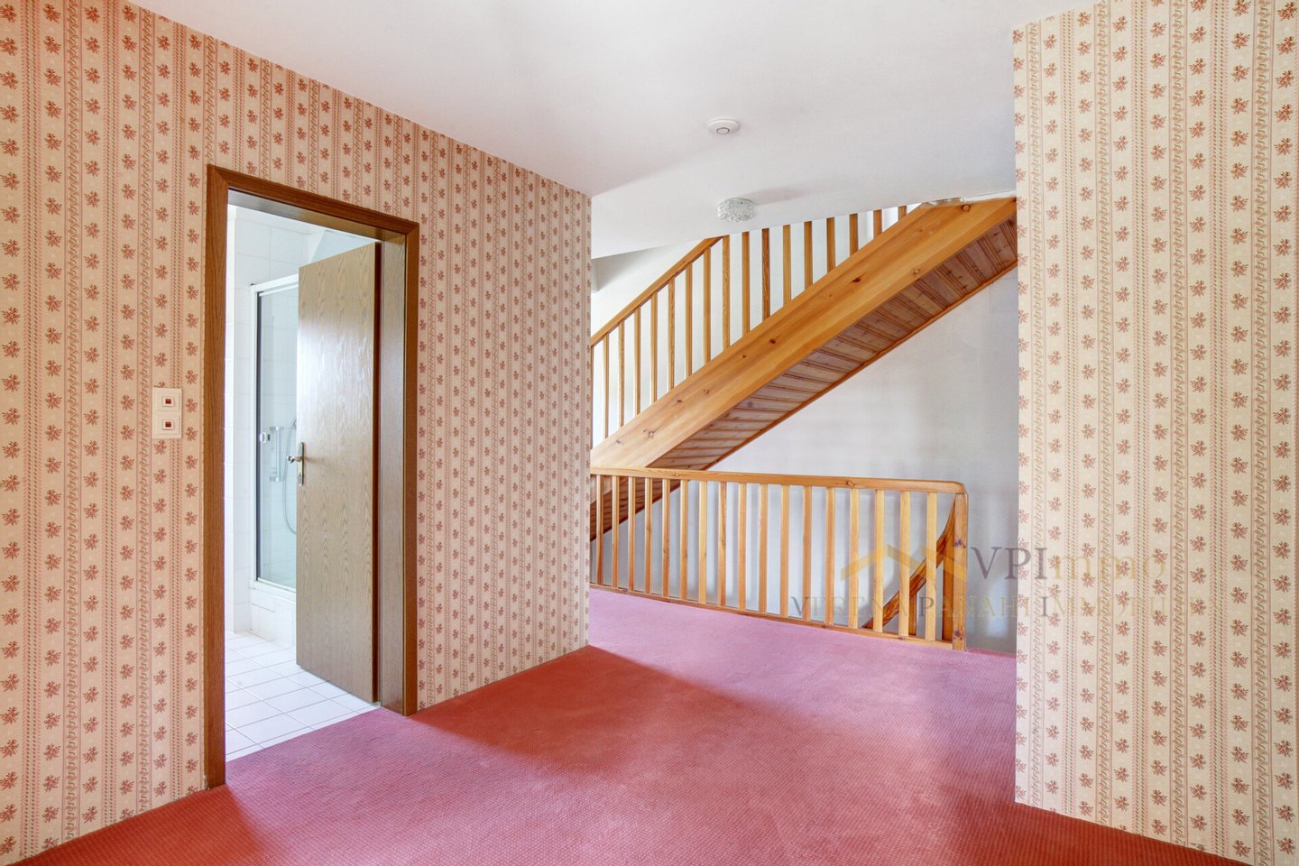 Besonders hervorzuheben ist das lichterfüllte ausgebaute Dachgeschoss. Hier haben Sie die Möglichkeit Wohnen und Arbeiten zu verbinden.