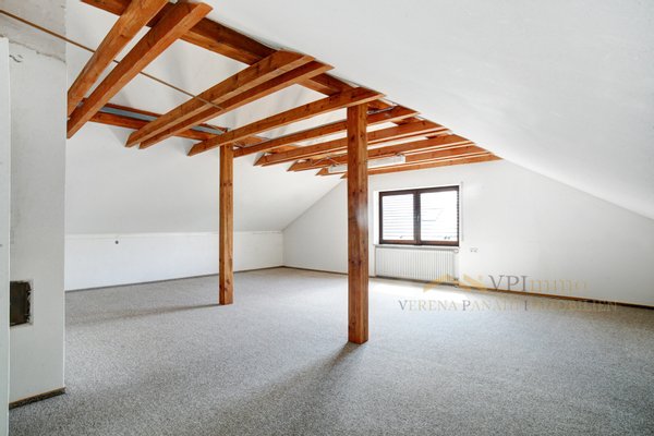 + Ausgebautes Dachgeschoss mit schmucken Holzbalken und großem Fenster