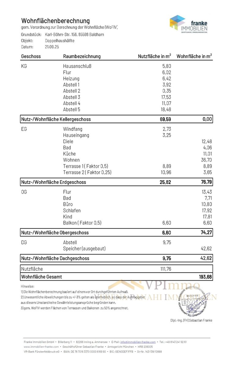 (ohne Erker, Terrassen, Balkone und Gauben) bei einem Umbau möglich.