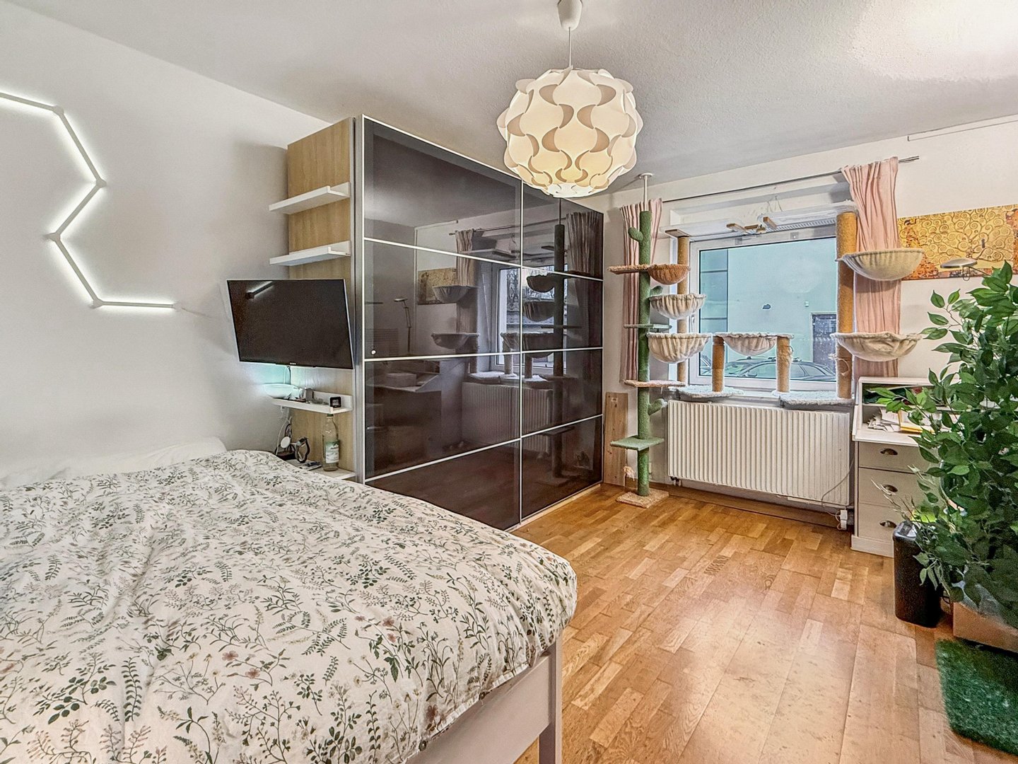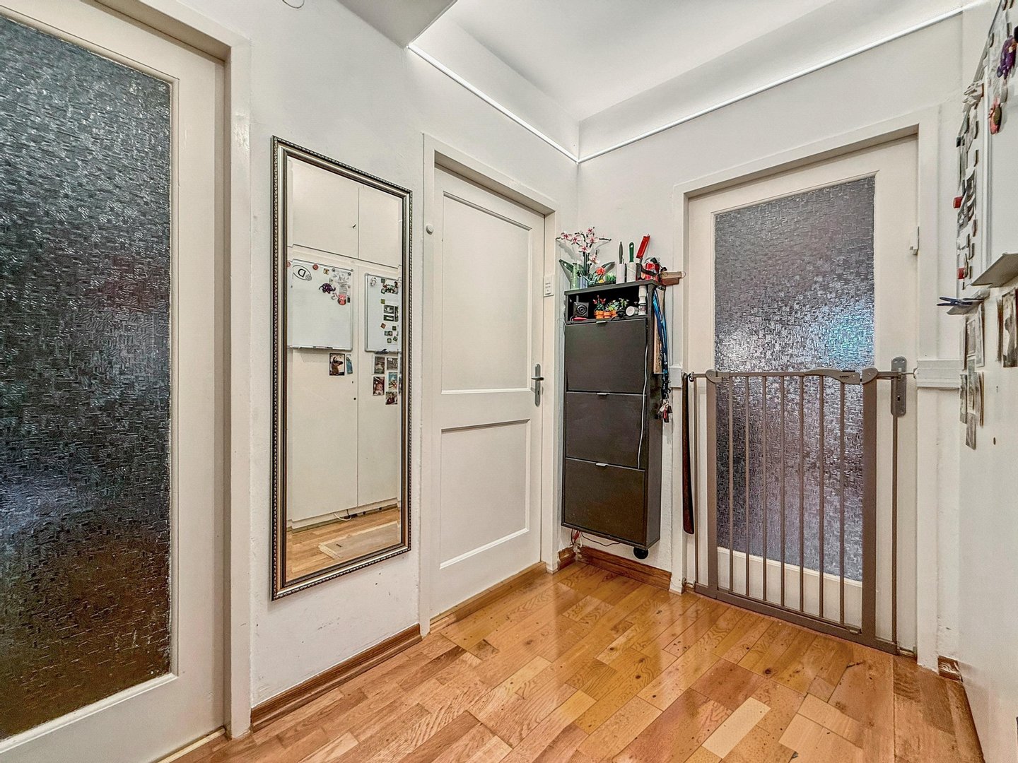 Bereits beim Betreten des Hauses fällt das kürzlich renovierte Treppenhaus aus, das sich in einem ansprechenden und gepflegten Zustand präsentiert und einen positiven ersten Eindruck vermittelt. In der Wohnung selbst gelangen Sie über eine großzügige Diele, in alle weiteren Räume. Ein praktischer Einbauschrank bietet hier zusätzlichen Stauraum.