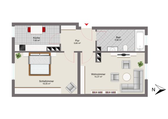 Dank des praktischen Grundrisses eignet sich die Wohnung hervorragend für Singles, Paare oder auch als WG.