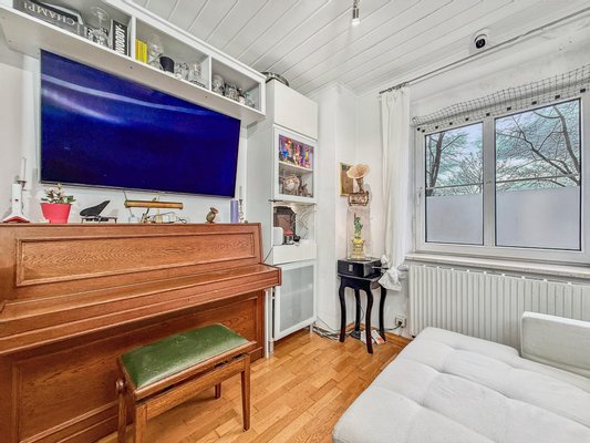 Die beiden Zimmer sind gleich groß geschnitten und bieten vielseitige Nutzungsmöglichkeiten - ideal als Wohn- und Schlafzimmer oder auch für eine Wohngemeinschaft. In beiden Zimmern sowie in der Diele ist Parkett verlegt, das für eine warme und einladende Atmosphäre sorgt.