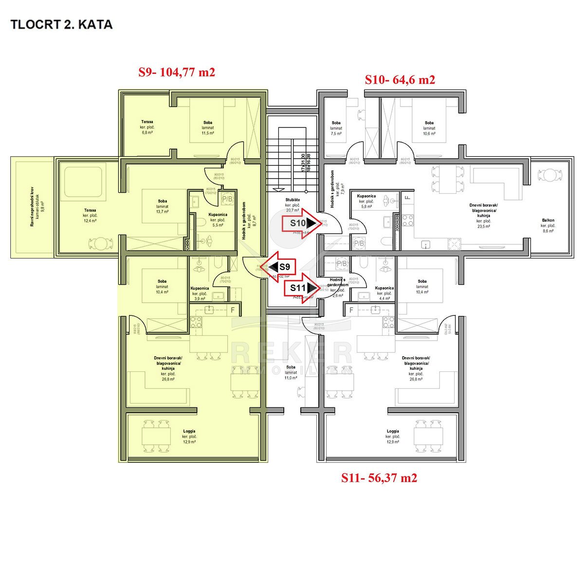 104,77 m² im 2. OG mit drei Schlafzimmern und mehreren Terrassen