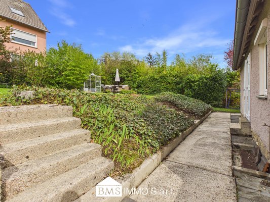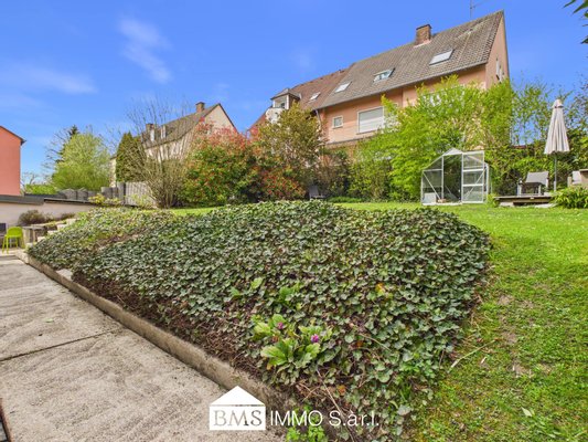 Der Außenbereich besticht durch eine schön angelegte Grundstücksfläche und eine separate Garage, die auch vom Haus aus betreten werden kann. Die unmittelbare Umgebung ist absolut ruhig und familienfreundlich, alle wichtigen Einrichtungen wie Einkaufsmöglichkeiten, Schulen und Verkehrsanbindung sind in wenigen Minuten erreichbar.
