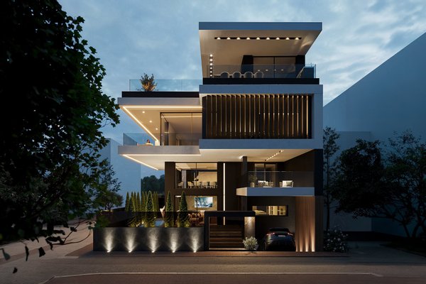 Die Villa erstreckt sich über 424 m² und befindet sich auf einem Eckgrundstück von 387 m².