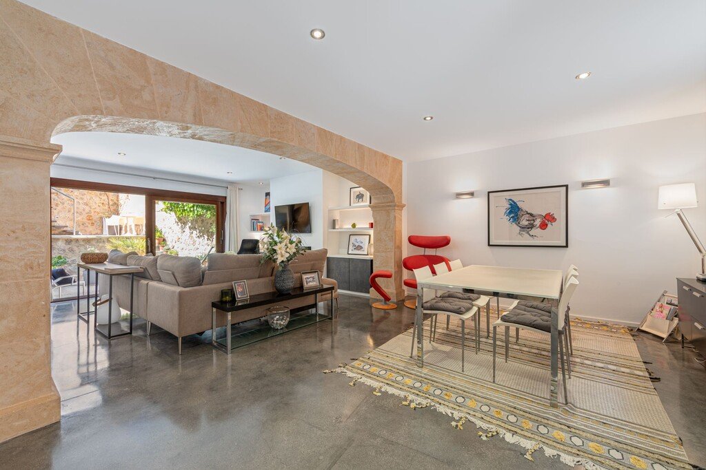 Entdecken Sie ein außergewöhnliches Dorfhaus im historischen Zentrum von Pollensa, einem der begehrtesten Orte im Norden Mallorcas. Dieses wunderschön gepflegte Haus verbindet authentischen mallorquinischen Charakter mit zeitgenössischem Design und