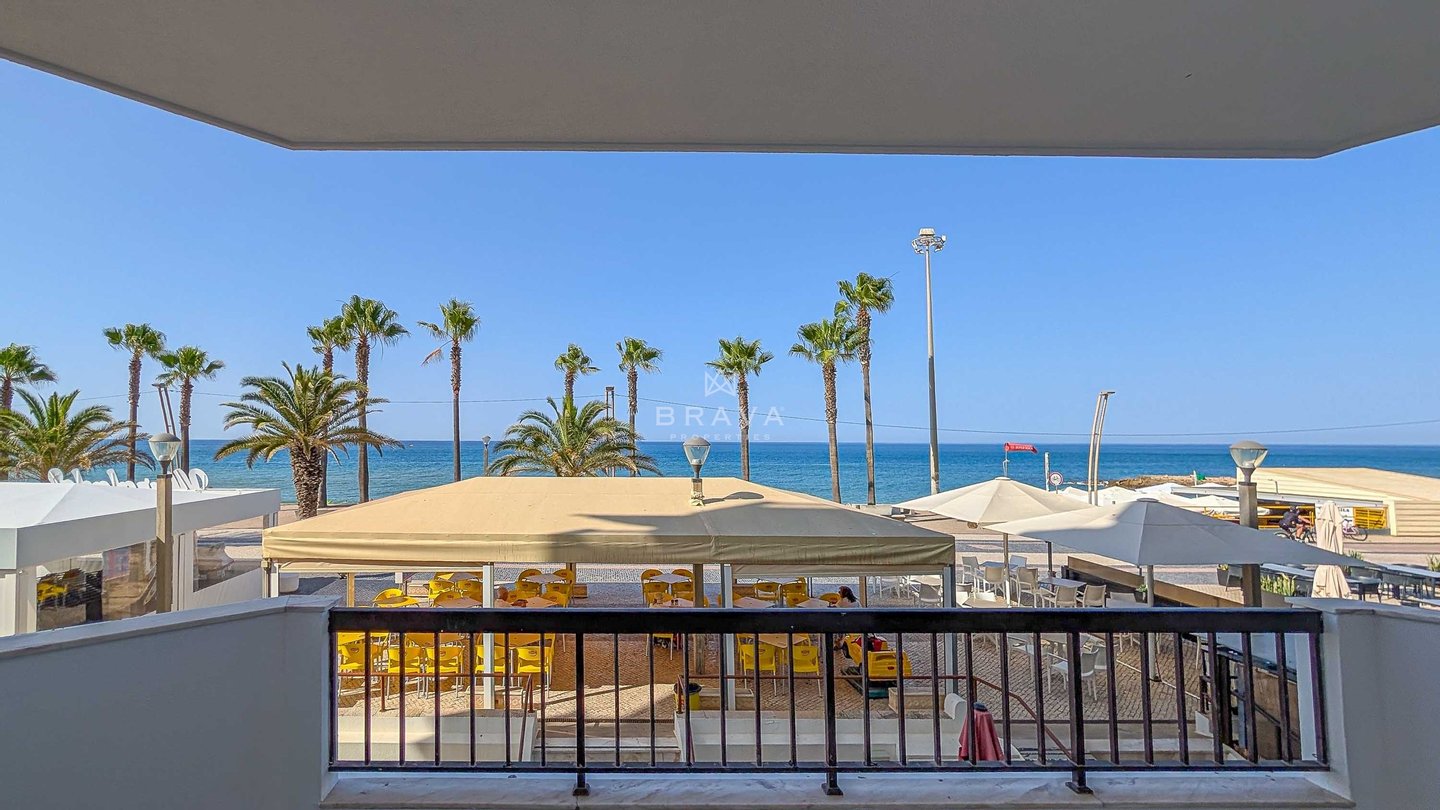 3-Zimmer-Wohnung mit direktem Meerblick in Quarteira, im ersten Stock, in einem Gebäude mit Aufzug.