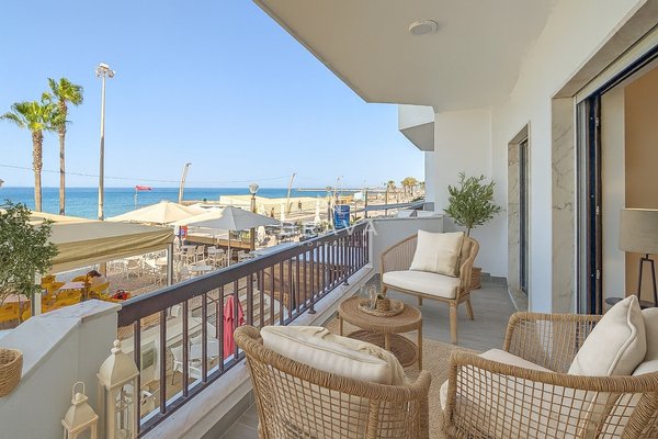Nach Süden ausgerichteter Hauptbalkon mit Meerblick
