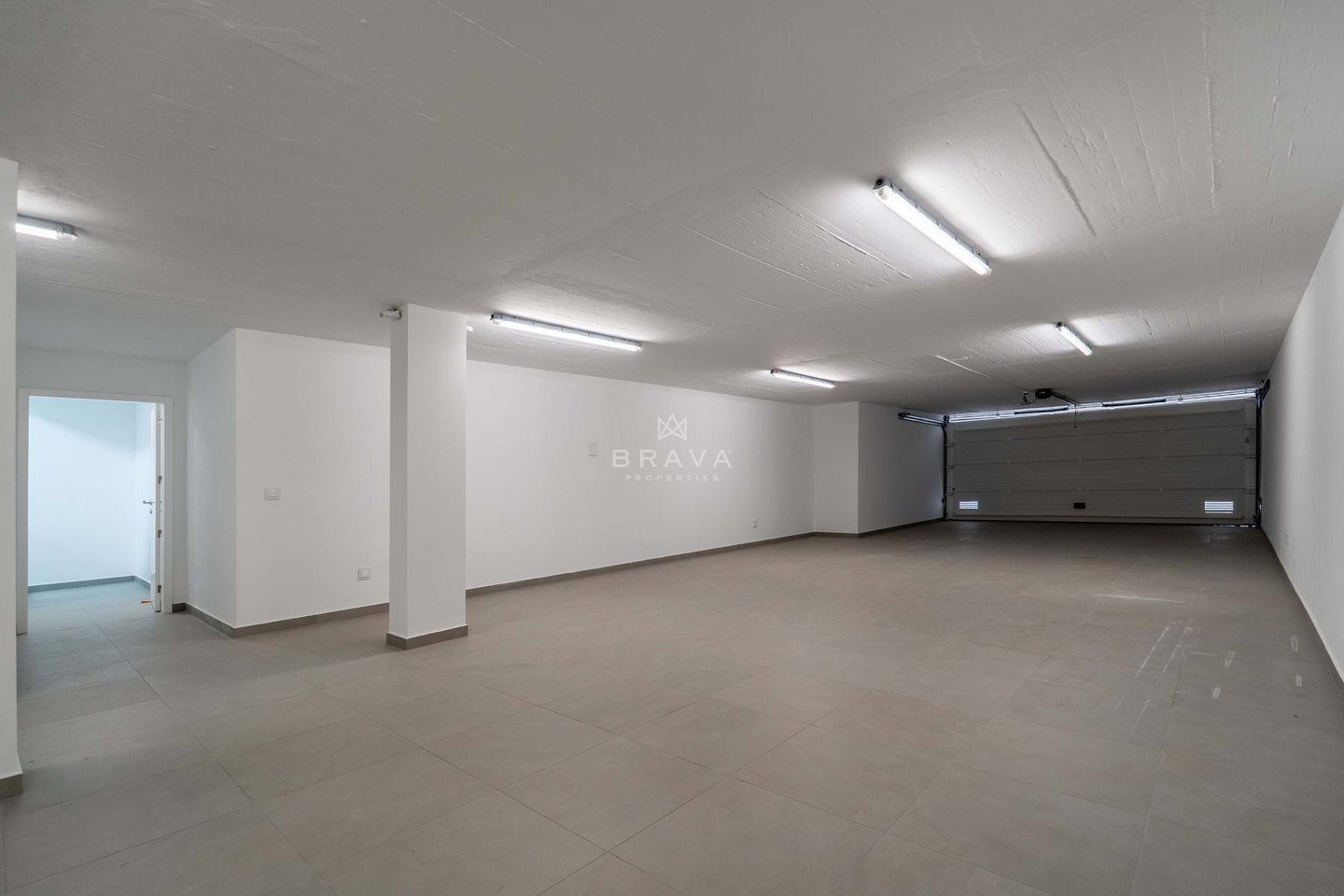 Garage mit Platz für zwei oder drei Autos und zusätzlicher Raum mit Potenzial für Fitnessraum, Kinoraum oder andere Nutzungen.
