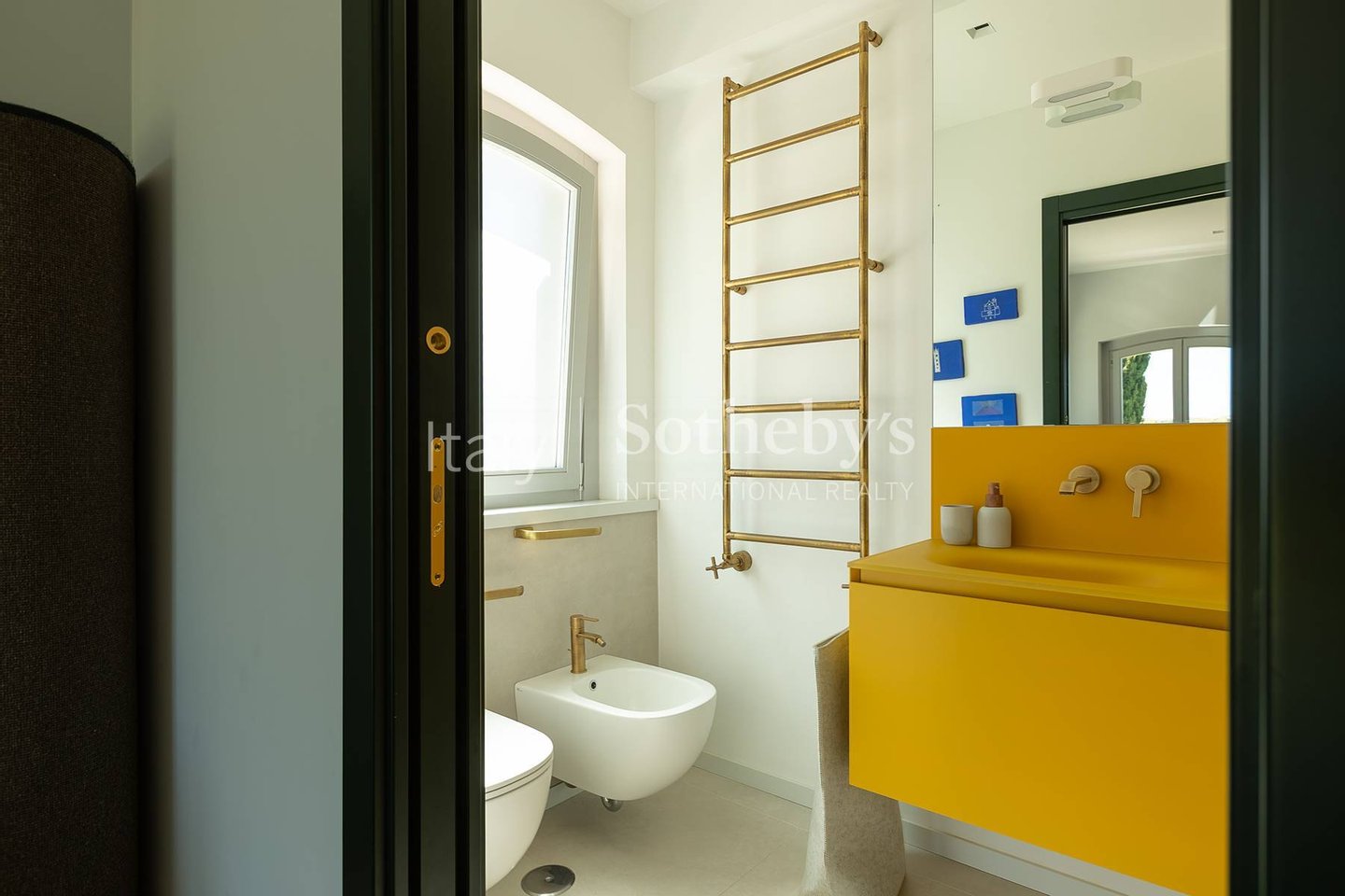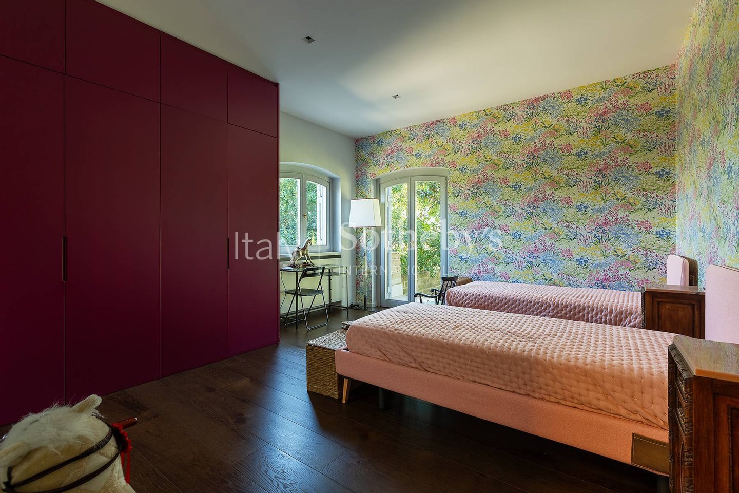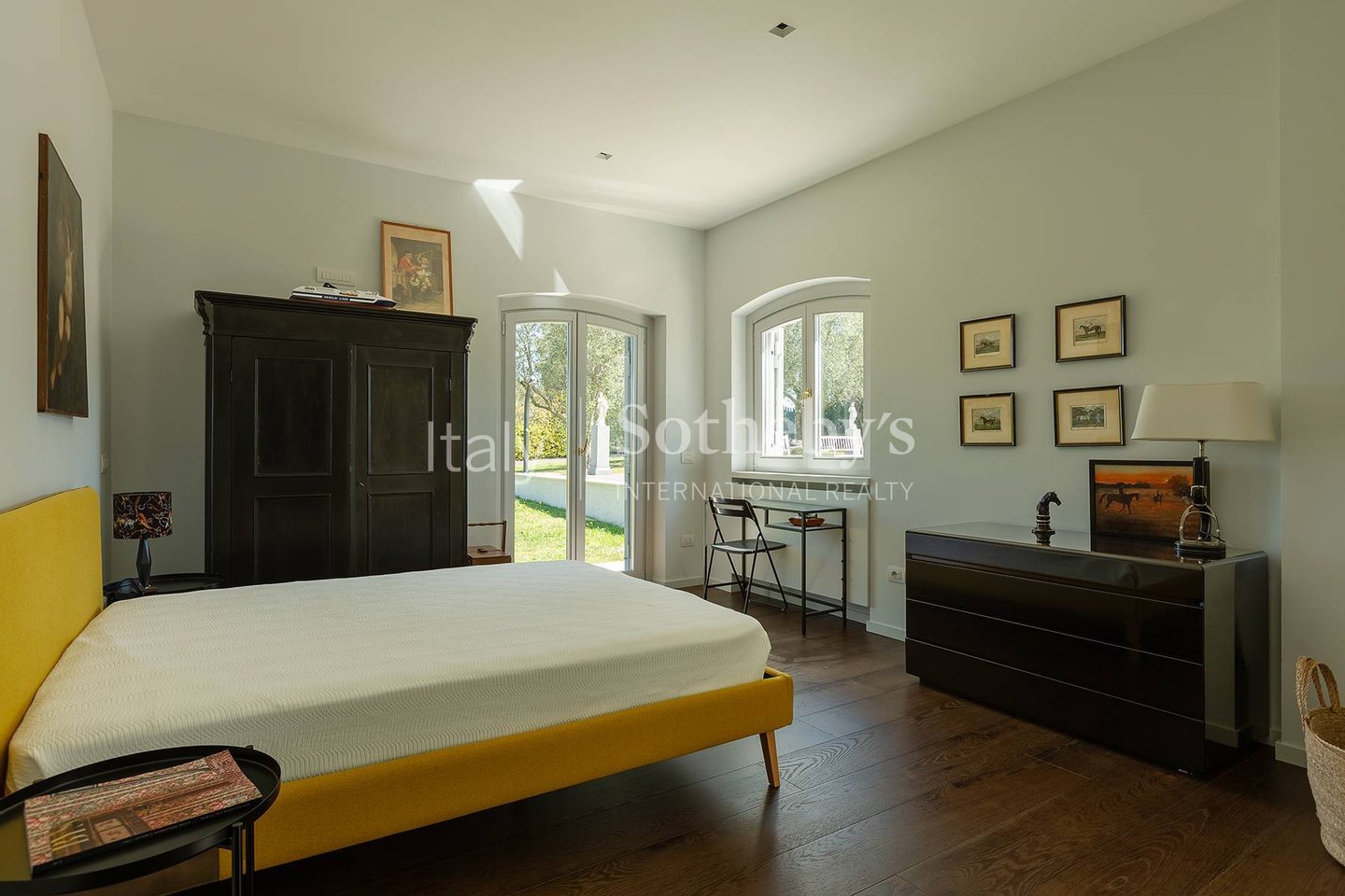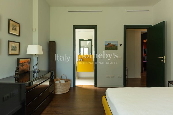 Arranged over three levels, the villa offers bright and harmonious interiors, including elegant living rooms with fireplaces, a fully equipped kitchen, and a refined wine cellar area seamlessly connected to the outdoor spaces. The sleeping quarters ensure maximum privacy and feature five bedrooms, each with its own en suite bathroom.