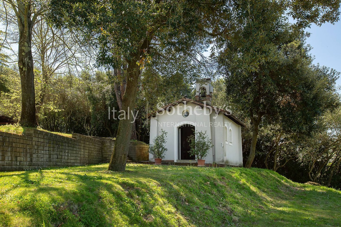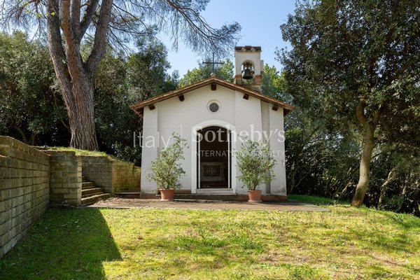 The landscaped grounds, complete with swimming pool, garden, and private park, create an ideal setting for relaxation and entertaining. A rare and charming private chapel further enhances the uniqueness of the estate.