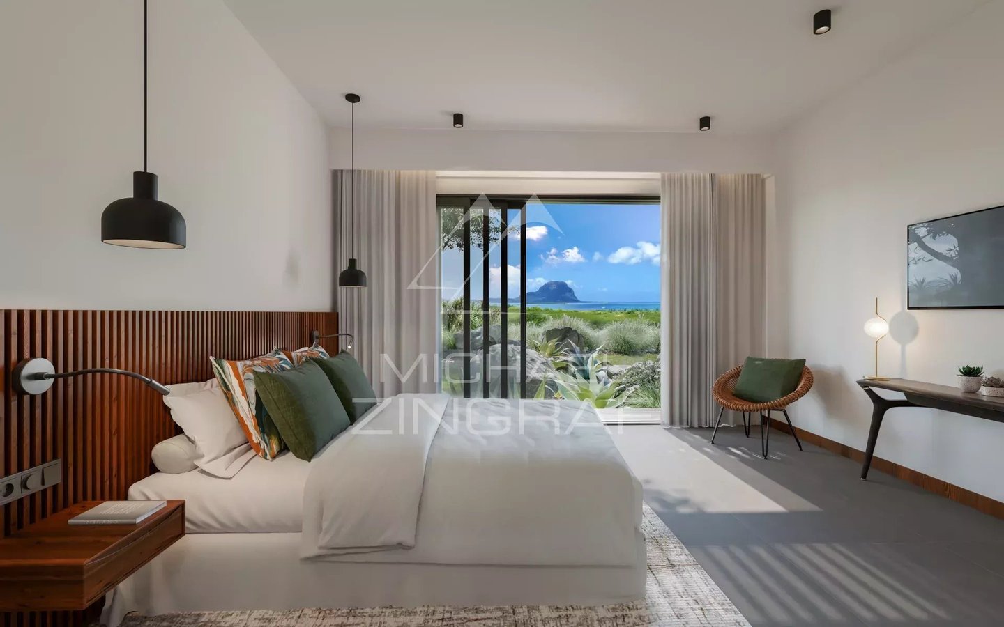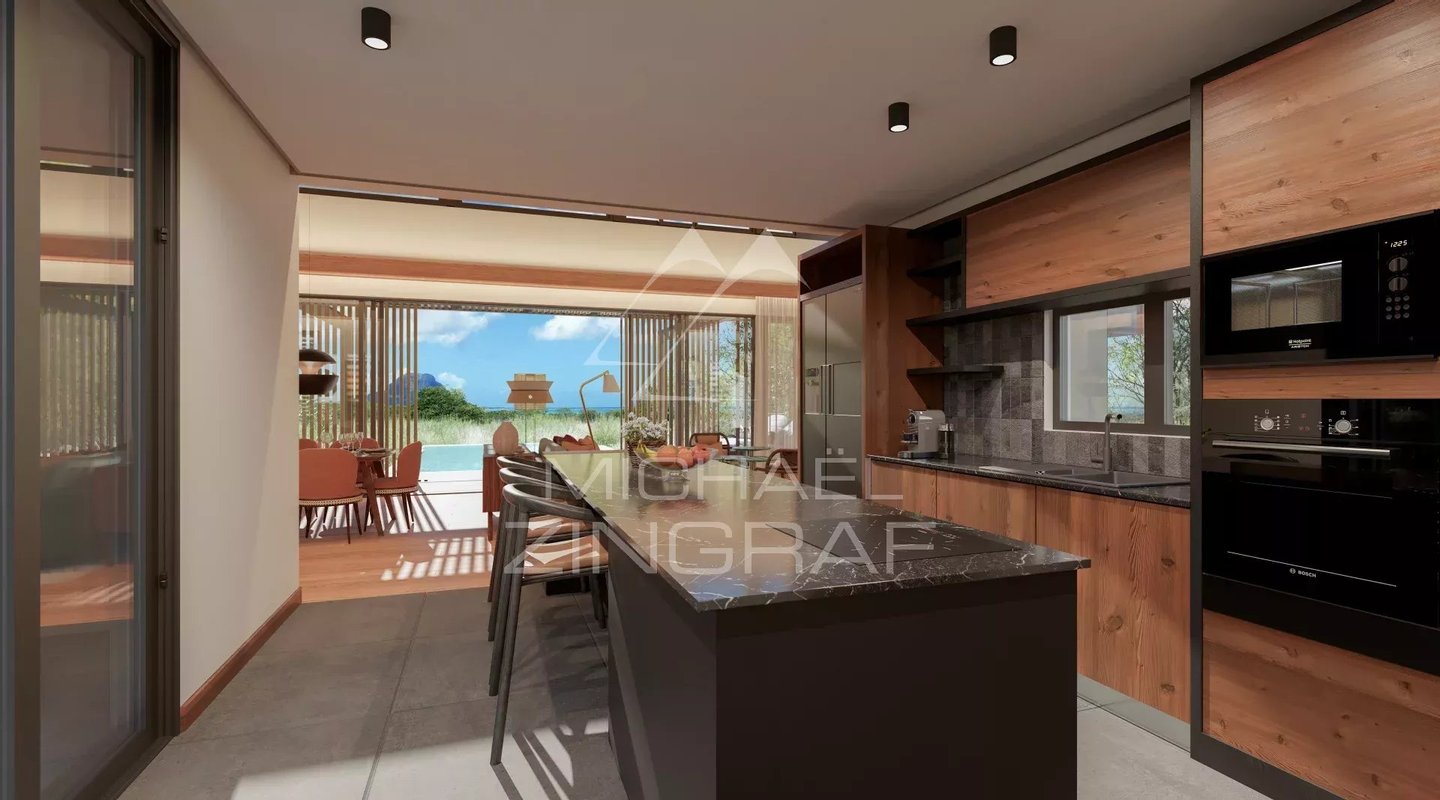 VILLA S: Dieses Konzept richtet sich in Phase 1 an die 31 nach Süden ausgerichteten Grundstücke. Diese Ausrichtung bietet die schönsten Ausblicke auf das Meer und die Halbinsel Le Morne sowie ein weicheres Licht. Vom Südostpassat umspielt, wurde