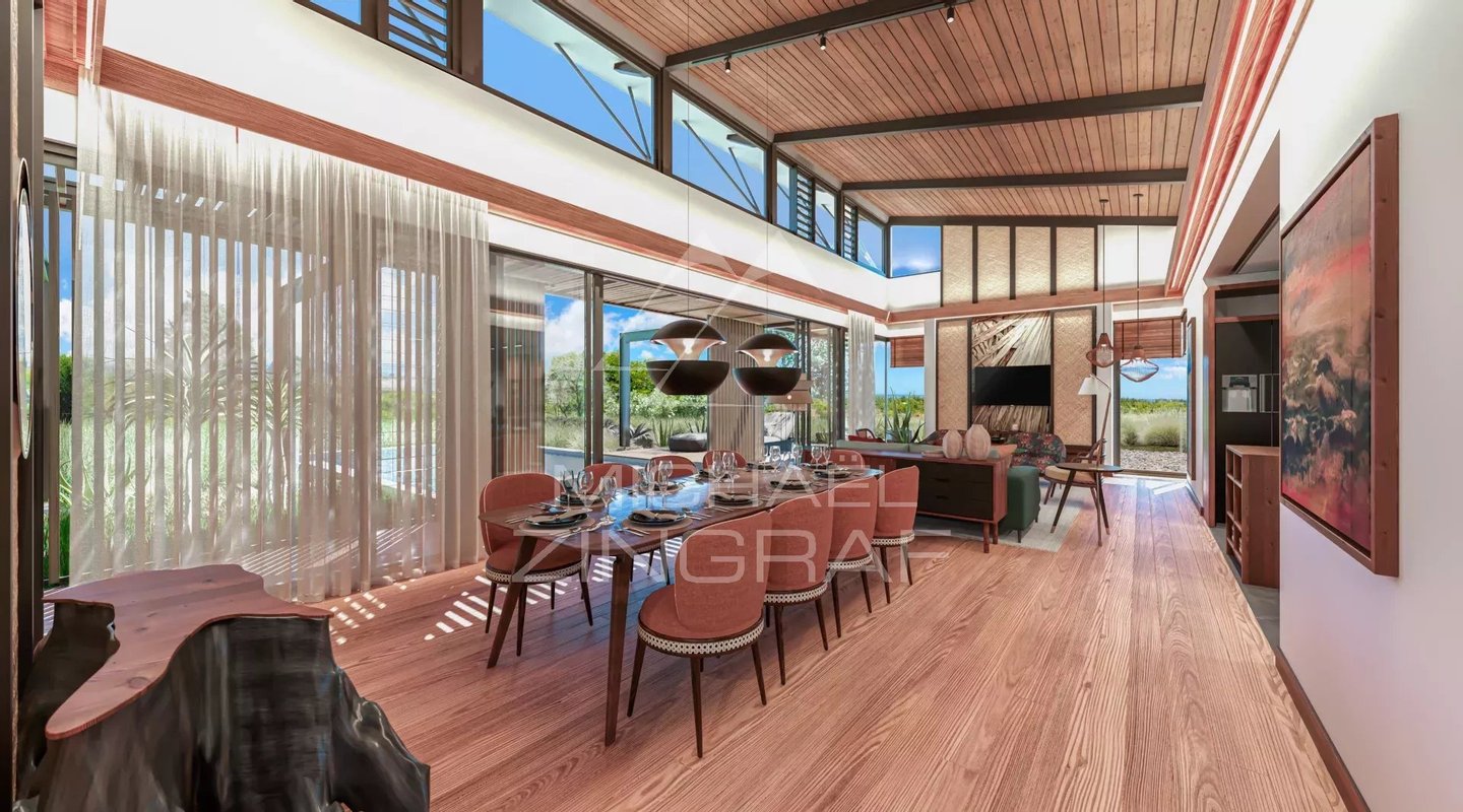 Dieses Konzept wird für 24 Villen (in Phase 1) angeboten. Elegant, großzügig und privat, bieten sie herrliche Ausblicke auf das Meer, den Golfplatz und den Berg La Tourelle de Tamarin, während sie gleichzeitig optimal ausgerichtet und vor Wind geschützt sind und von natürlichem Licht profitieren. Der Innenhof mit tropischer Bepflanzung bildet eine grüne Oase, um die sich das tägliche Leben organisiert. Mit drei Schlafzimmern en suite (ein viertes ist optional verfügbar) und großzügigen Wohnbereichen, die Wohnzimmer, Esszimmer und offene Küche vereinen und sich zu den Außenbereichen (Kiosk und Pool) hin öffnen, verkörpern sie das ideale tropische Familienhaus.
