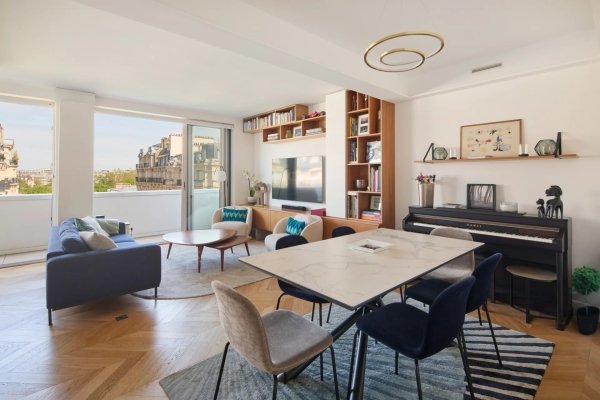 Im 7. Stock mit Aufzug eines Gebäudes aus dem Jahr 1965 befindet sich eine doppeldimensionale Nord-Süd-Wohnung mit 76 m². Sie öffnen sich auf zwei durchgehende Balkone mit herrlichen offenen Ausblicken auf den Eiffelturm, bestehend: