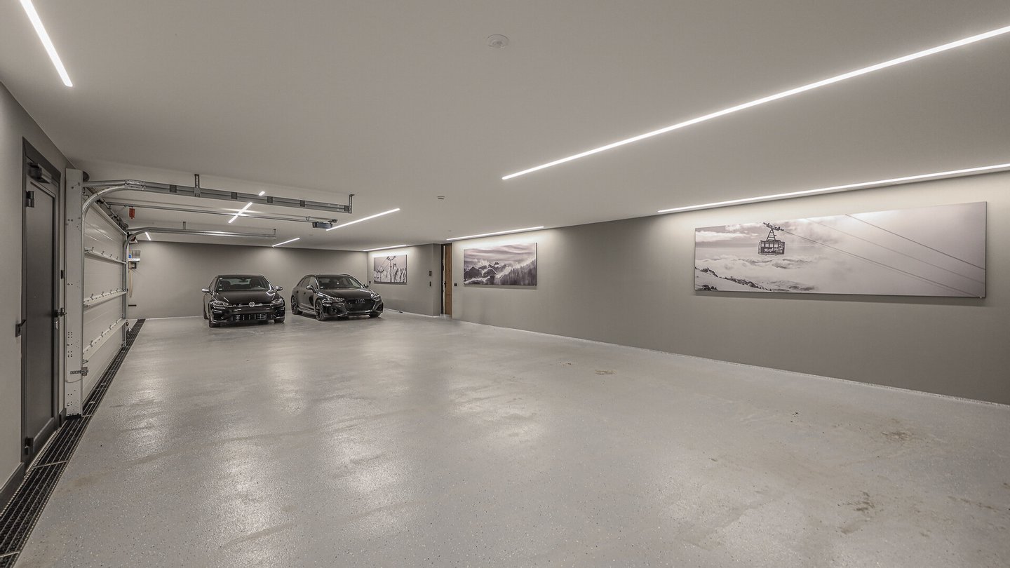 Eine weitere, separate Tiefgarage unterhalb des Gartens für bis zu 6 weitere Fahrzeuge ist zusätzlich vorhanden.