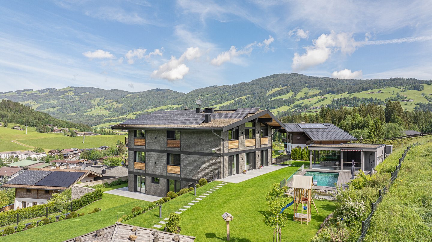 Neben der absolut ruhigen Lage, ist der grandiose Ausblick auf die Kitzbüheler Alpen und das Brixental, dank der Hanglage absolut unverbaubar.