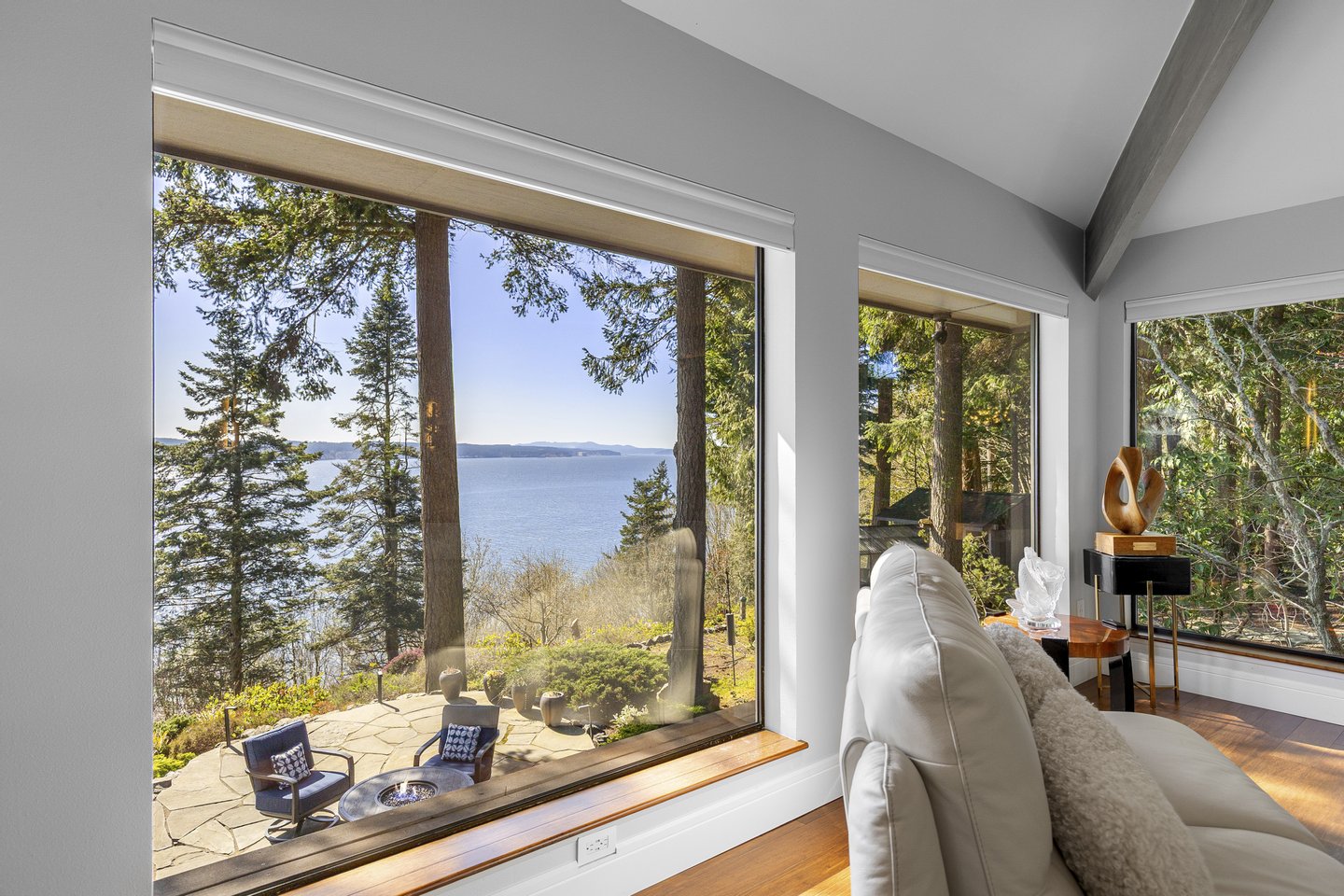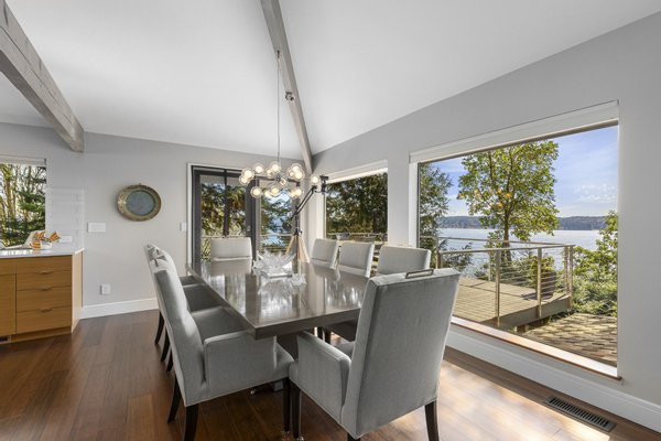 Auf 1,44 Acres mit Blick auf den Hood Canal gelegen, bietet dieses wunderschön renovierte Hochuferhaus am Wasser einen kultivierten Rückzugsort im pazifischen Nordwesten mit weiten Wasserblicken und durchdacht gestalteten Wohnbereichen.