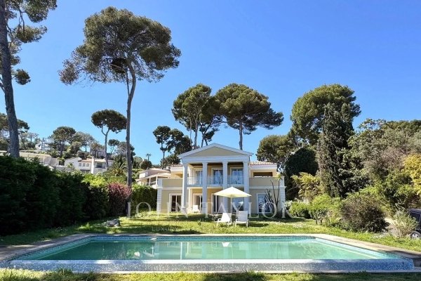 Schöne Villa im palladianischen Stil mit weitem Meerblick über Cap d'Antibes, 150 qm auf 1425 qm Grundstück.