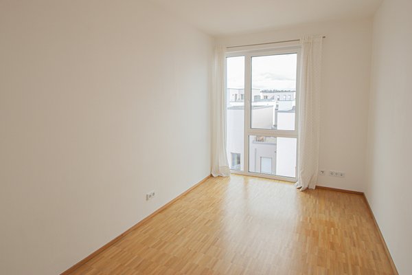 Die Raumhöhe von 2,85 m sorgt überall für ein angenehmes Wohngefühl. Die bodentiefen Fenster sind durch ein elegantes Vorhangsystem eingefasst.