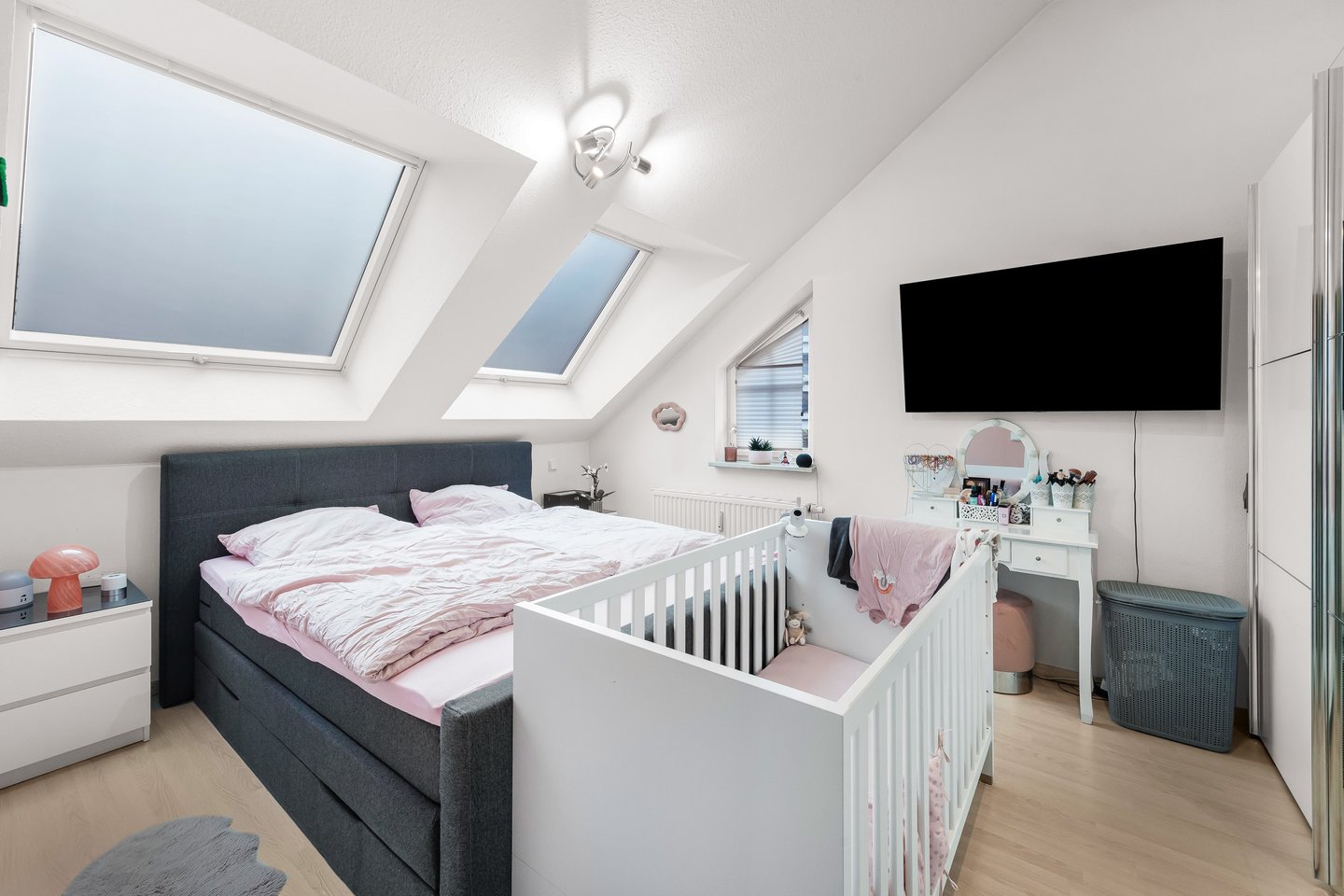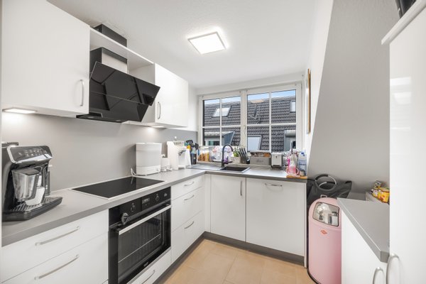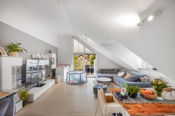 Diese stilvoll modernisierte 2-Zimmer-Dachgeschosswohnung befindet sich im 2. Obergeschoss eines gepflegten Mehrfamilienhauses aus dem Jahr 1994 – ohne Aufzug – und vereint durchdachte Raumaufteilung mit einem hohen Wohnkomfort in einer kleinen, sehr ruhigen Wohnanlage mit nur sechs Einheiten. Auf ca. 64,37 m² entsteht ein Wohngefühl, das deutlich über den klassischen Standard hinausgeht. Bereits beim Betreten wird klar: Hier wurde Wert auf Qualität und Atmosphäre gelegt. Die im Jahr 2022 durchgeführte Sanierung sorgt für ein zeitgemäßes, helles Erscheinungsbild und ein stimmiges Gesamtbild der Wohnung. Der großzügige Wohn- und Essbereich bildet das Zentrum der Wohnung und überzeugt durch seine angenehme Lichtführung sowie den direkten Zugang zum Balkon – ein idealer Rückzugsort mit Blick ins ruhige Umfeld. Die Dachschrägen sowie die hohen Decken verleihen der Wohnung Charakter und schaffen eine besondere Wohnatmosphäre. Das Schlafzimmer ist gut geschnitten und ruhig gelegen, während die separate, neuwertige Küche aus 2022 mit Fenster funktional gestaltet ist und sich harmonisch in den Grundriss einfügt. Das Badezimmer präsentiert sich klassisch und gepflegt. Die kleine WEG mit nur sechs Parteien steht für ein angenehmes, fast schon familiäres Miteinander sowie eine langfristig stabile Eigentümerstruktur – ein klarer Vorteil gegenüber größeren Anlagen. Die Wohnung wird derzeit von den Eigentümern selbst genutzt und ist ab Ende 2026 bezugsfrei. Damit eignet sich die Immobilie sowohl für Eigennutzer mit Planungsvorlauf als auch für Kapitalanleger mit Fokus auf eine nachhaltige Perspektive. Insgesamt handelt es sich um eine moderne, sehr gepflegte Dachgeschosswohnung mit klarem Profil: ideal für Käufer, die Wert auf Ruhe, Qualität und eine überschaubare Hausgemeinschaft legen. Zur Wohnung gehört ein Tiefgaragen Duplexstellplatz sowie ein Kellerabteil.