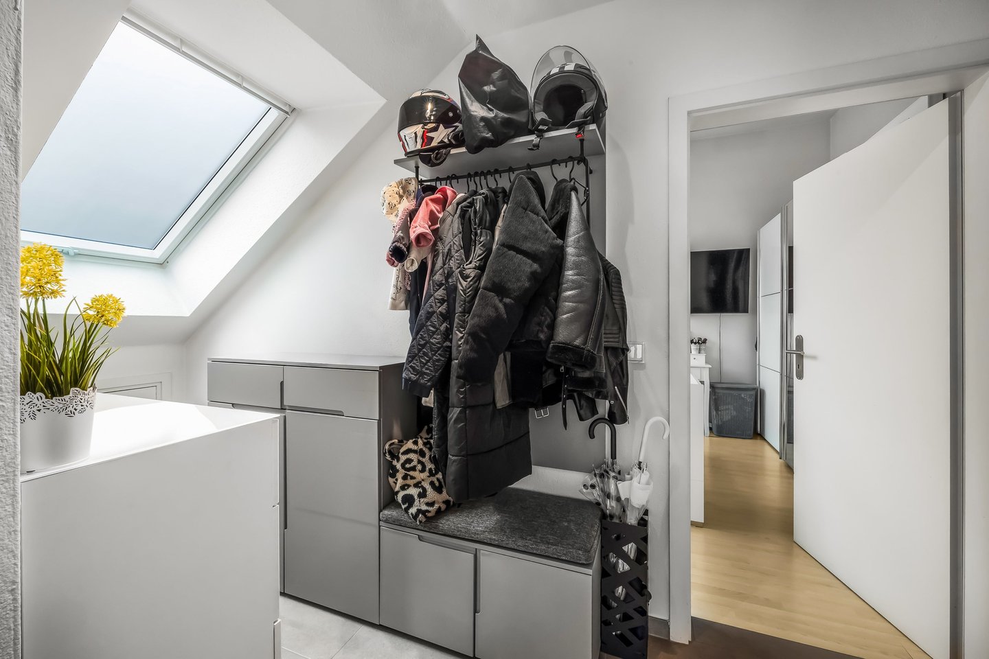 Diese stilvoll modernisierte 2-Zimmer-Dachgeschosswohnung befindet sich im 2. Obergeschoss eines gepflegten Mehrfamilienhauses aus dem Jahr 1994 – ohne Aufzug – und vereint durchdachte Raumaufteilung mit einem hohen Wohnkomfort in einer kleinen, sehr
