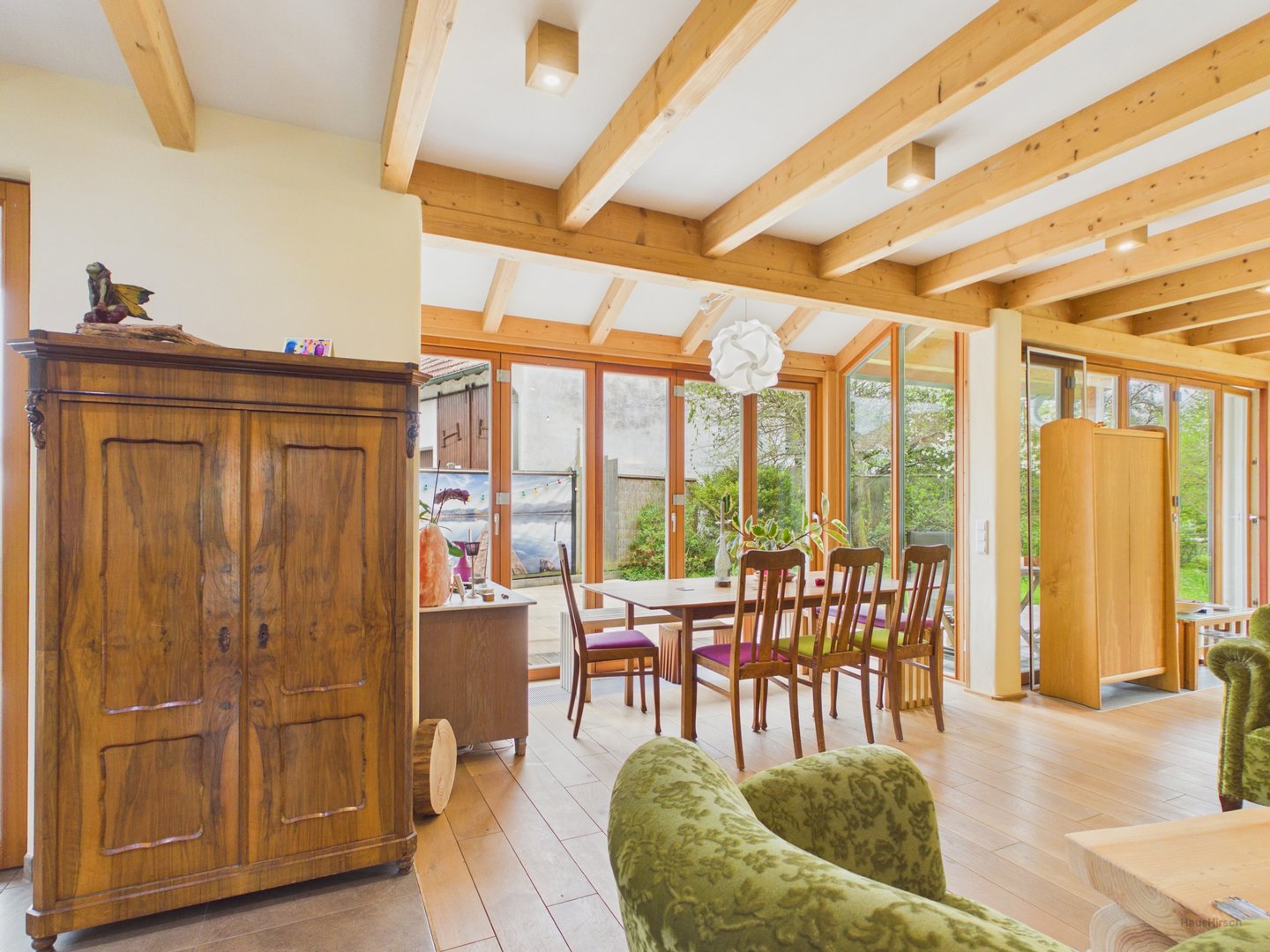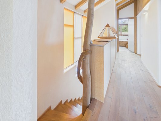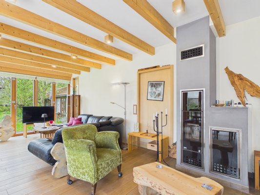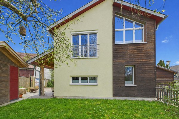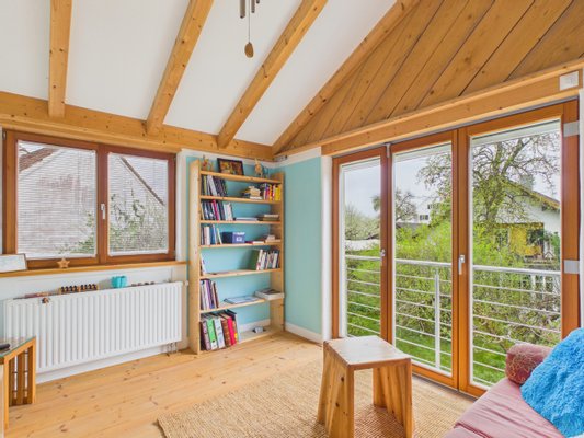 Dieses freistehende Einfamilienhaus in Adelshofen ist ein mit großer Sorgfalt geplantes und realisiertes Herzensprojekt eines Schreinermeisters, der das Haus nicht nur selbst bewohnt hat, sondern seine Expertise im ökologischen Bauen maßgeblich in
