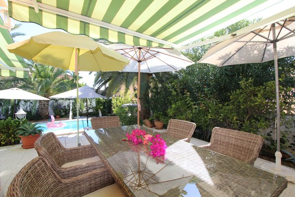 Diese charmante Villa im mediterranen Stil befindet sich in einer der ruhigen Wohnlagen von Badia Blava. Eingebettet in ein Grundstück mit absoluter Privatsphäre entfaltet sich ein liebevoll gestalteter Garten, der mit seiner mediterranen Bepflanzung eine ganz besondere Atmosphäre schafft. Palmen, blühende Pflanzen und sonnendurchflutete Terrassen bilden eine grüne Oase, die zum Verweilen, Genießen und Entspannen einlädt.