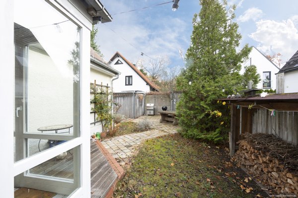 Der traumhafte, uneinsehbare Garten präsentiert sich äußerst gepflegt und liebevoll gestaltet. Ein Gartenhaus sorgt für zusätzlichen Stauraum, während ein gepflasterter Weg und eine gemütliche Grillecke zu entspannten Stunden im Freien einladen. Umgeben von viel Grün lassen sich hier laue Sommerabende in idyllischer Ruhe genießen.