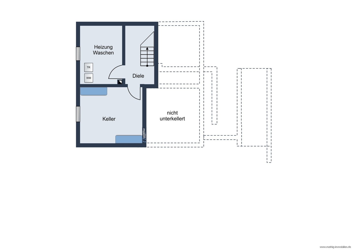 Das Untergeschoss des Hauses beherbergt einen großzügigen Kellerraum sowie einen weiteren Raum mit viel Platz für Ihre Waschmaschine sowie Ihren Trockner.