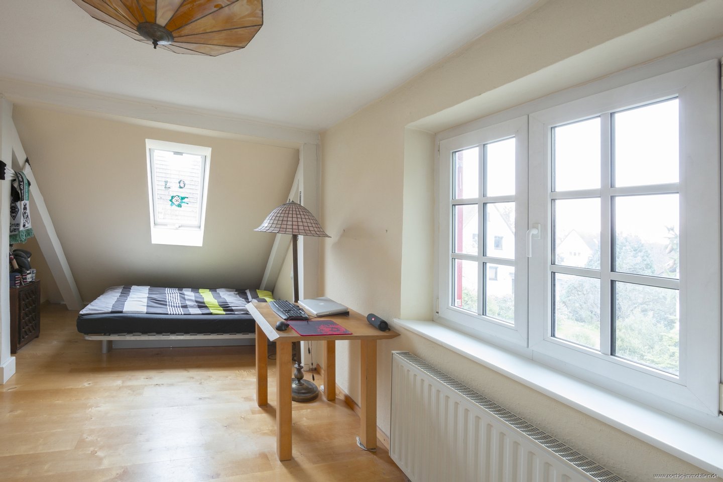 Ein weiteres, zum Garten ausgerichtetes Schlafzimmer bietet mit ca. 17 m² Fläche viel Raum für individuelle Wohnideen und eignet sich ideal als Kinder-, Gäste- oder Elternschlafzimmer. Aufgrund des hervorragenden Schnittes sind Ihren Einrichtungsvorstellungen keine Grenzen gesetzt.