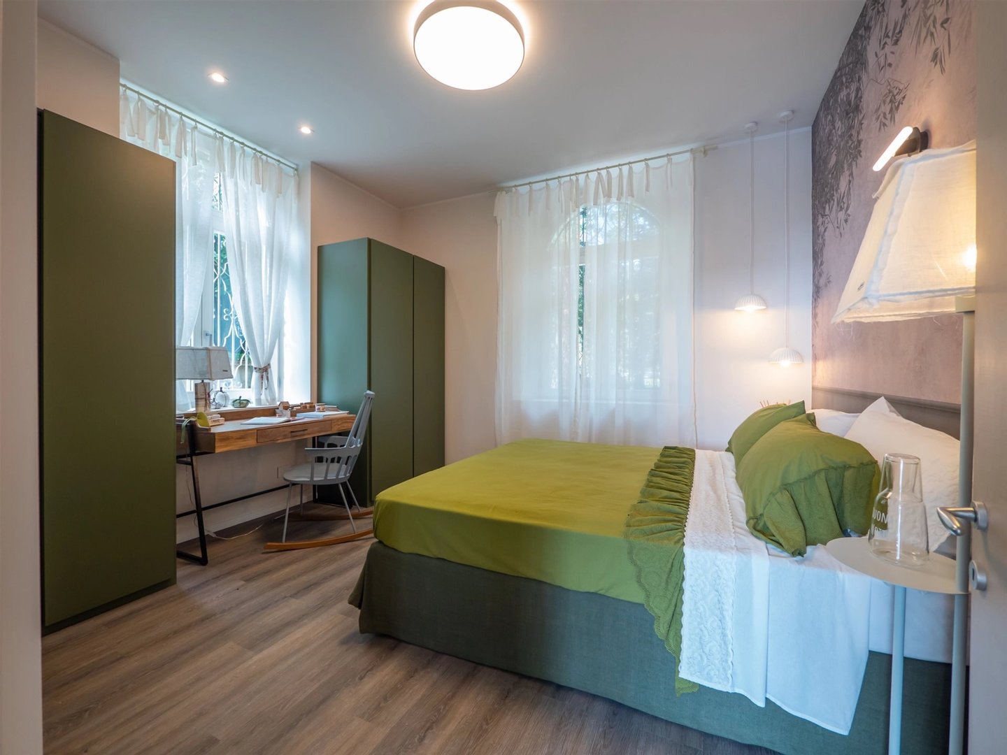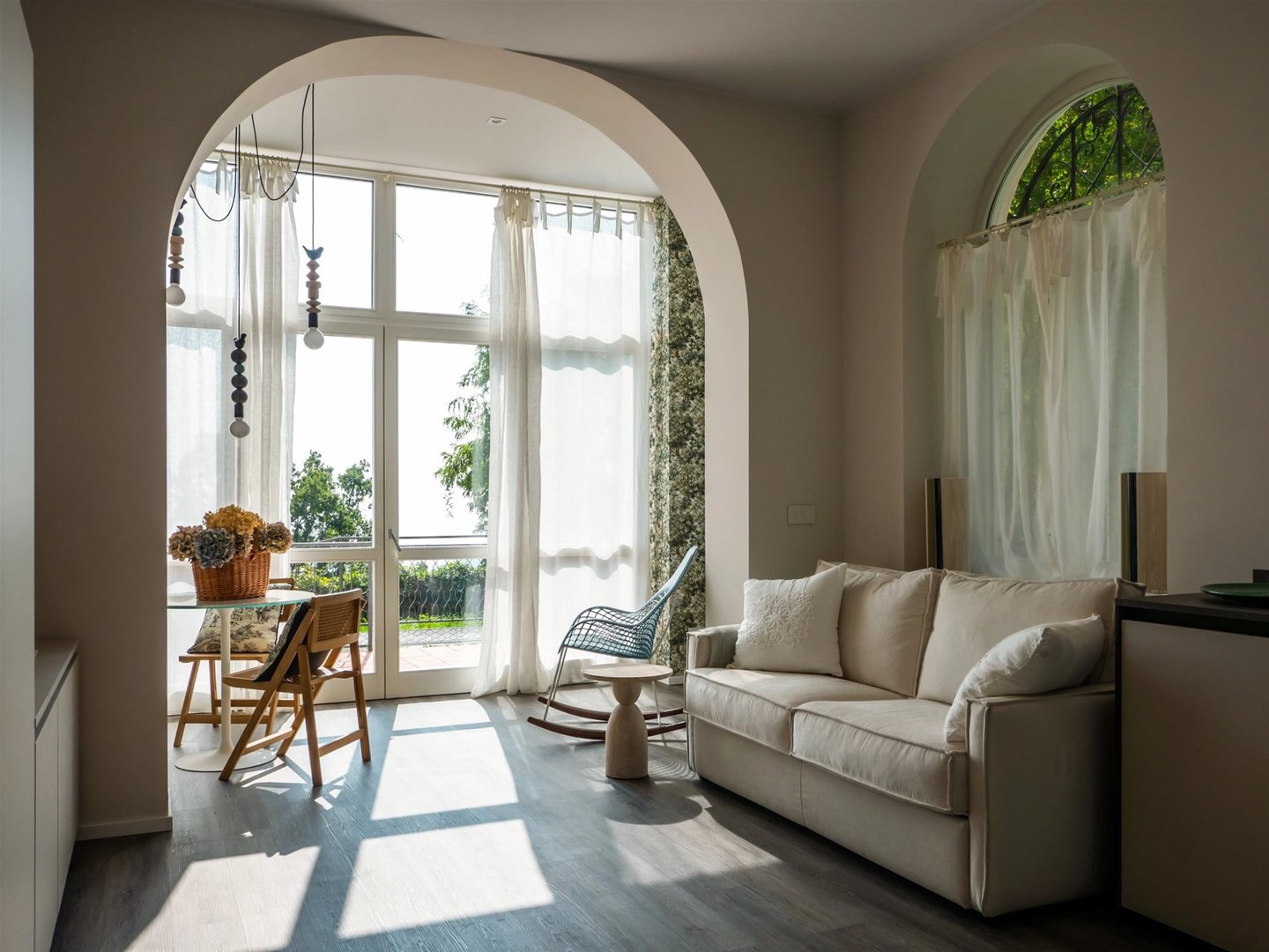 Die ca. 72 Quadratmeter große Wohnung bietet eine doppelte Ausrichtung, eines der markantesten Merkmale: Einerseits zum Meer und zum Golf von Sanremo, andererseits zum privaten, jahrhundertealten Park, der den gesamten Komplex umgibt. Natürliches Licht begleitet die Räume den ganzen Tag, gewährleistet konstante Belüftung und ein Gefühl von Gleichgewicht und Wohlbefinden in jeder Jahreszeit.