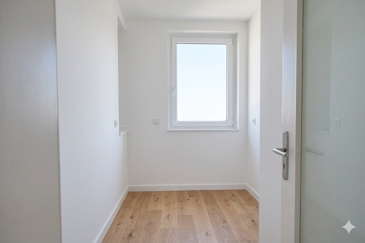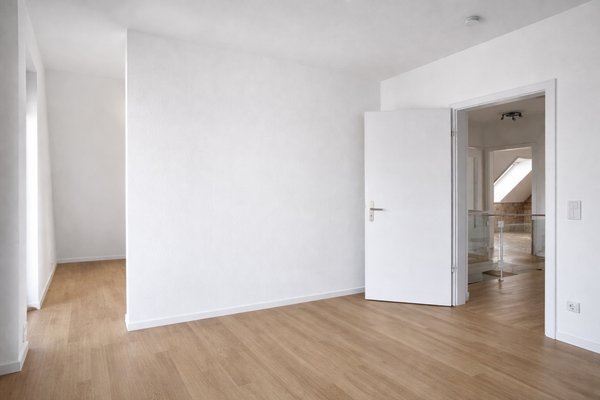 Ein separater Flur führt zu zwei weiteren Zimmern, die flexibel als Schlaf-, Gäste- oder Arbeitszimmer genutzt werden können. Ergänzt wird diese Ebene durch ein Badezimmer sowie einen Abstellraum, der optional mit dem angrenzenden Duschbad verbunden werden kann und so zusätzlichen Gestaltungsspielraum bietet.