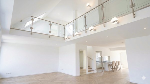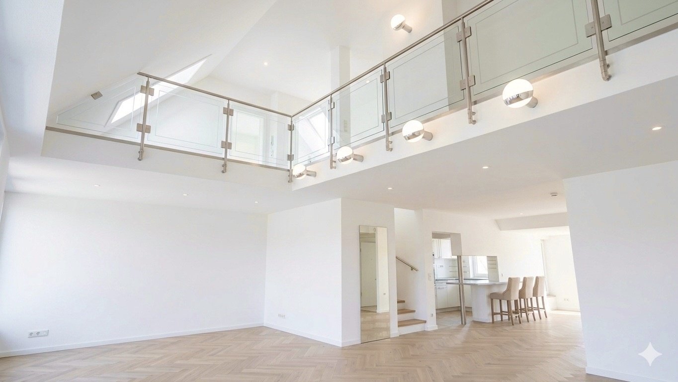 Willkommen in einer außergewöhnlichen Maisonette-Wohnung, die Großzügigkeit, Licht und architektonische Eleganz auf höchstem Niveau vereint. Diese exklusive Zweietagen-Galeriewohnung erstreckt sich über die beiden obersten Etagen und bietet mit ca. 194 m² Wohnfläche ein einzigartiges Wohngefühl.