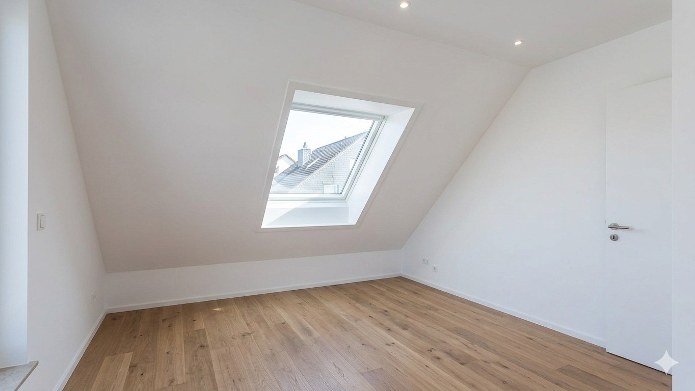 Große Fensterflächen und zusätzliche Dachflächenfenster sorgen auch auf dieser Ebene für eine außergewöhnlich helle und freundliche Atmosphäre.