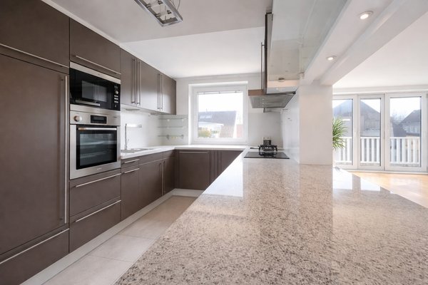 Von diesem Bereich aus gelangen Sie direkt auf den großzügigen XL-Balkon bzw. die Sonnenterrasse mit ca. 30 m² Fläche. Der Blick ins Grüne sowie die ruhige Lage machen diesen Außenbereich zu einem echten Highlight – perfekt für entspannte Abende oder repräsentative Momente.