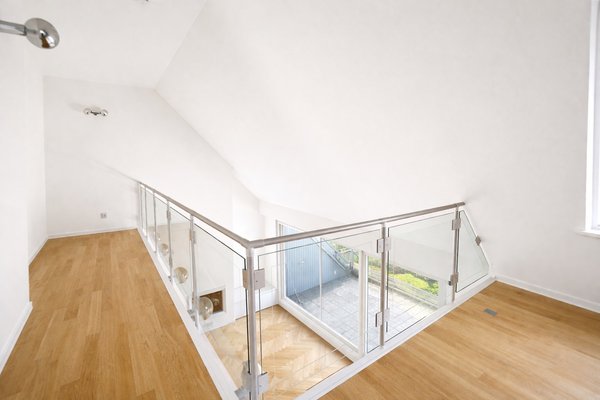 Über eine offen gestaltete Treppe gelangen Sie in das Obergeschoss. Hier eröffnet sich die eindrucksvolle Galerie, die einen direkten Blick in den Wohnbereich ermöglicht und das offene Wohnkonzept unterstreicht. Dieser Bereich eignet sich ideal als Lounge, Arbeitsbereich oder Rückzugsort.