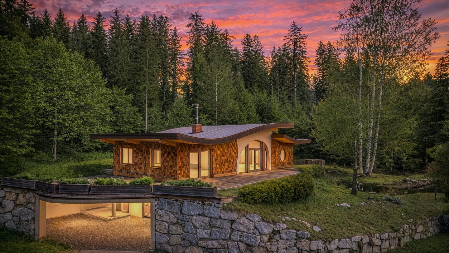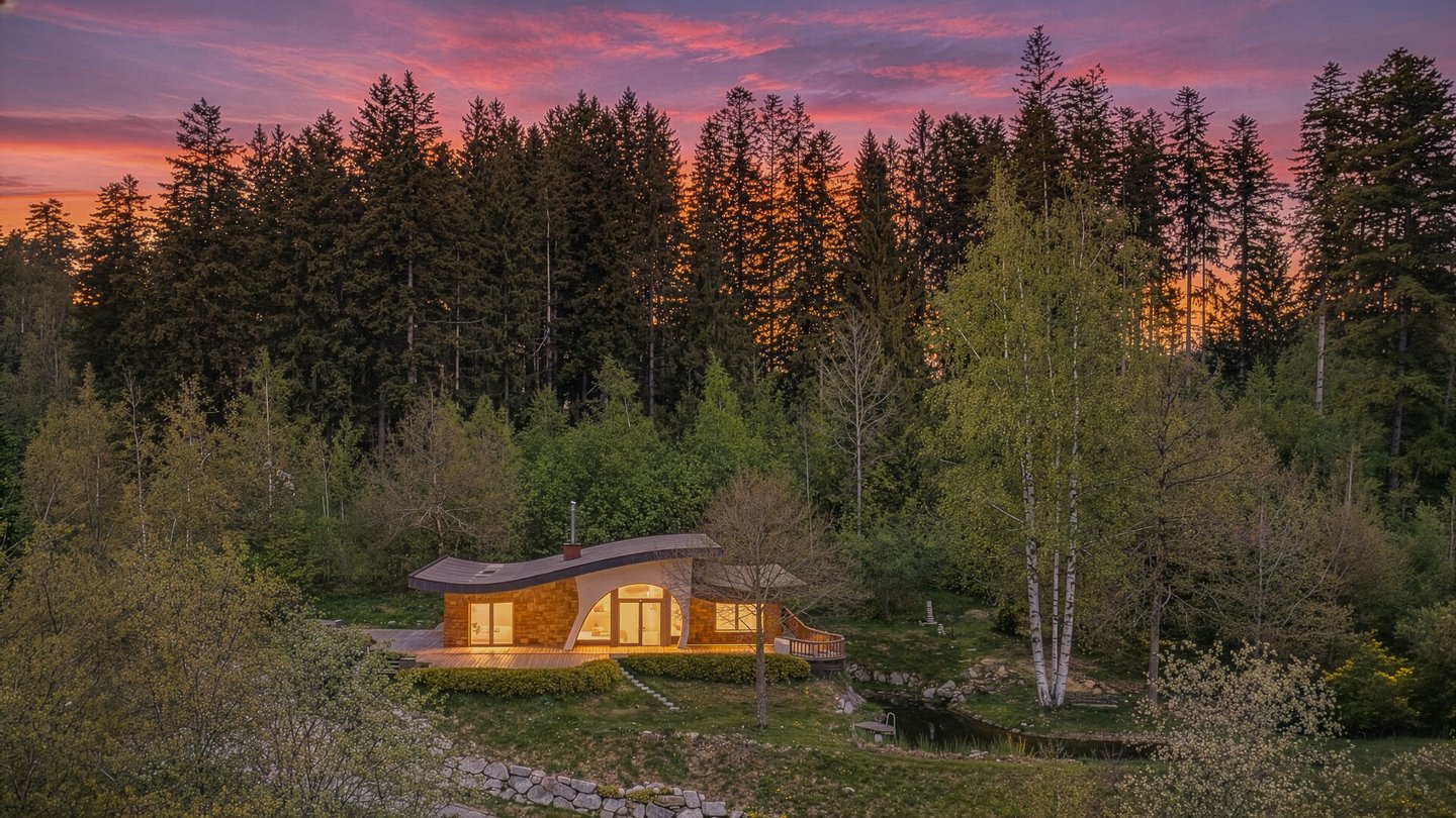 Das Haus selbst wurde 2017 auf einem energetisch positivem Platz am Waldrand in unmittelbarer Nähe des Schwarzsees errichtet und besticht durch die voll-ökologische Bauweise. Schon von außen erkennt man die etwas "andere" Bauform, die geschwungenen Linien geben dem Objekt nicht nur ein besonderes Aussehen, sondern haben darüber hinaus auf die Bewohner eine harmonisierende Wirkung.