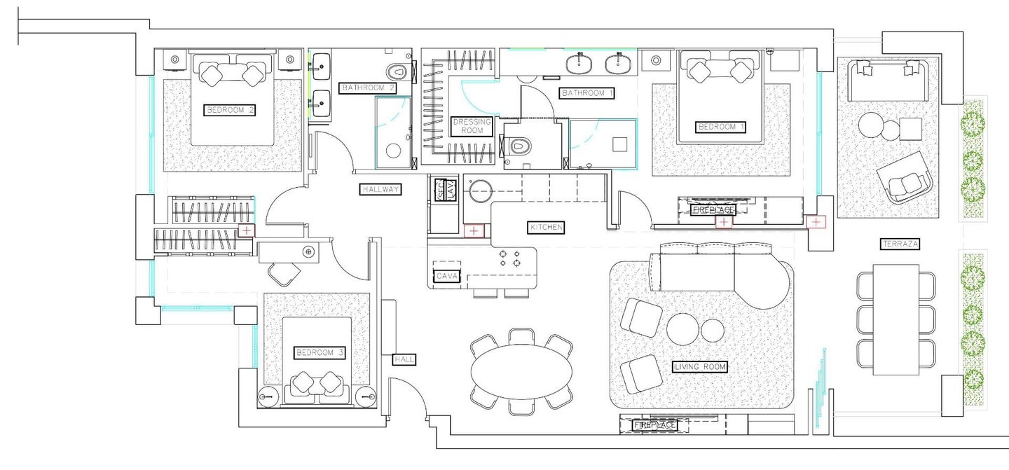 Step outside to the private 27 sqm terrace, which opens onto lush tropical gardens and provides serene sea views, ideal for al fresco dining or morning coffee in a peaceful environment. Fully furnished and ready to move in, Velerin 31 embodies a lifestyle of convenience and sophistication.