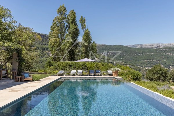 Das Grundstück von mehr als 1,5 Hektar verfügt über einen unglaublichen 15 Meter langen Infinity-Pool, eine große Lounge-Terrasse mit einer Bar und wunderschöne Landschaftsgärten.