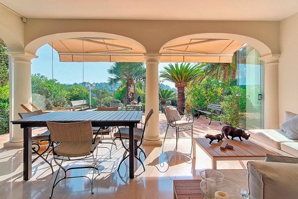 Villa liegt an einem ruhigen Ort in der Nähe der Golfplätze, ganz nach Süden ausgerichtet mit klarem Ausblick. Helles und luftiges Wohnzimmer, das zur Terrasse und zum Garten hinausgeht, ausgestattete Küche mit Zugang zu einer schattigen Terrasse, vier Schlafzimmer einschließlich einer Master-Suite mit Terrasse und Blick auf die Kiefern von den Estreel-Hügeln bis zum Felsen von Roquebrune, mit Blick auf das Meer. Angelegter Garten mit Schwimmbad, nicht übersehen. Doppelgarage, Parkplatz, Klimaanlage, geschmackvolle Termine.