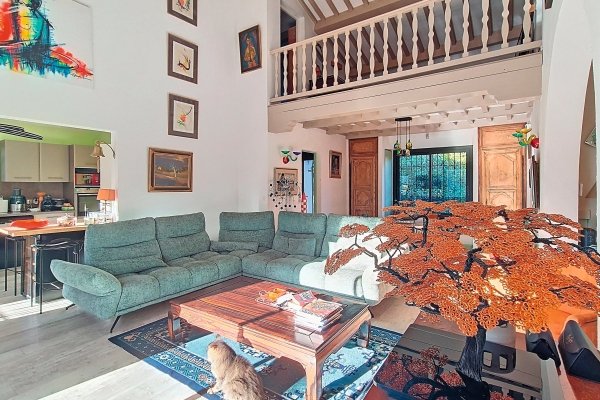 Villa in Valescure, in the sought-after neighbourhood of Saint-Raphaël, near shops and golf-courses. Nestling in leafy surroundings, it offers a living-room with semi-open kitchen, leading out to the terrace and pool area. The house benefits from 6 bedrooms, a mezzanine, a study or playroom, 2 bathrooms, 3 shower rooms, and separate WCs. Basement with a large garage, laundry room and cellar.