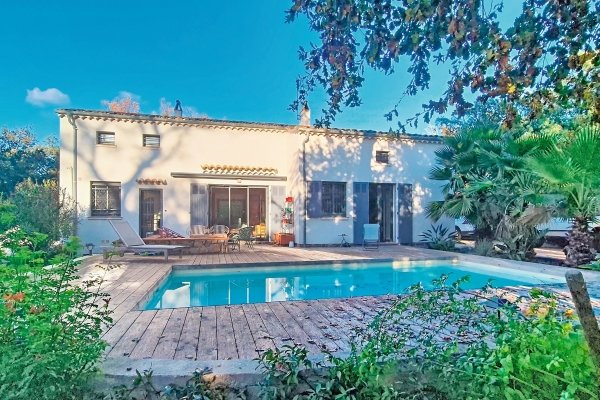 Villa in Valescure, in the sought-after neighbourhood of Saint-Raphaël, near shops and golf-courses. Nestling in leafy surroundings, it offers a living-room with semi-open kitchen, leading out to the terrace and pool area. The house benefits from 6