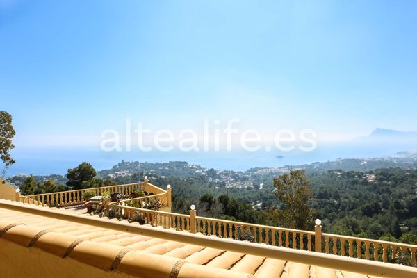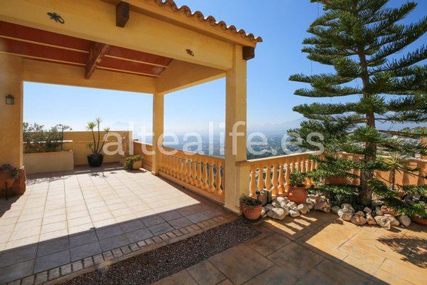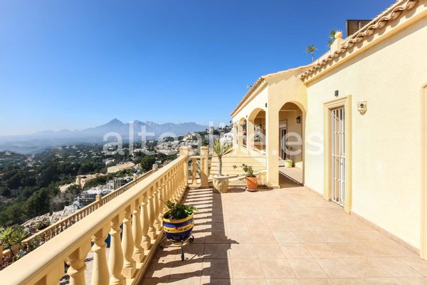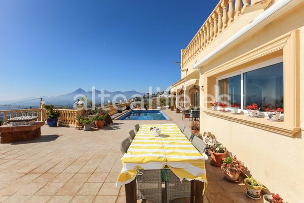 Villa zum Verkauf mit Panoramablick auf das Meer in der Sierra de Altea, gelegen auf einem großen Grundstück von 1.500 m² und mit 342 m² gebaut. Dieses elegante Anwesen vereint Geräumigkeit, Privatsphäre, südöstliche Ausrichtung und spektakuläre