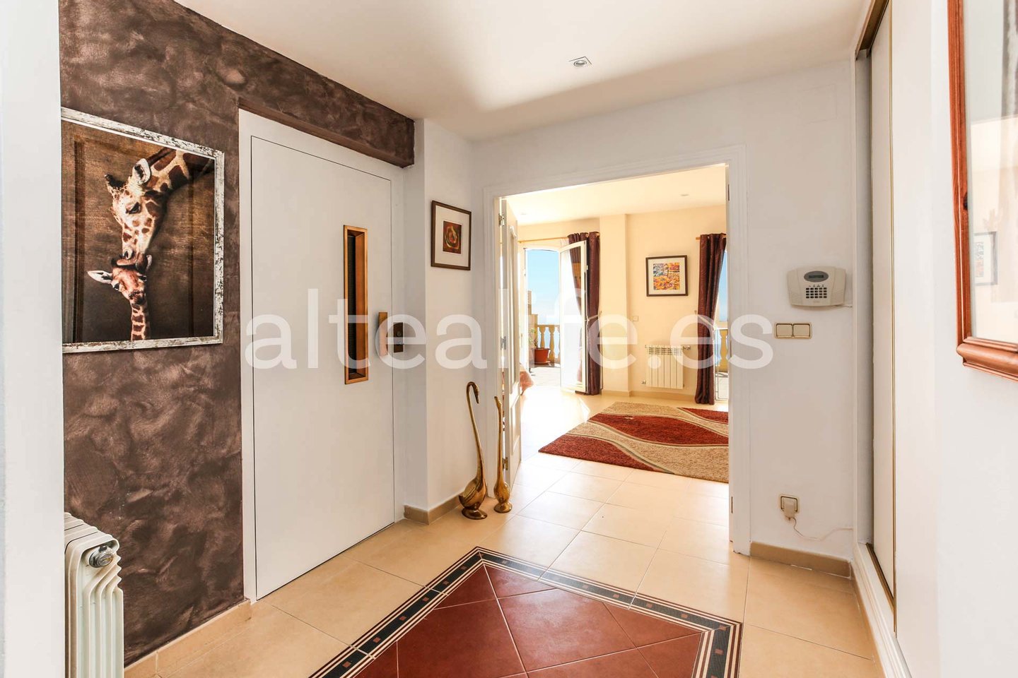 Villa zum Verkauf mit Panoramablick auf das Meer in der Sierra de Altea, gelegen auf einem großen Grundstück von 1.500 m² und mit 342 m² gebaut. Dieses elegante Anwesen vereint Geräumigkeit, Privatsphäre, südöstliche Ausrichtung und spektakuläre Ausblicke auf die Bucht von Altea und die Berge und bietet eine privilegierte Umgebung in einem der exklusivsten Wohngebiete der Costa Blanca. Die Villa liegt nur 5 Autominuten vom Strand, der Luis Campomanes Marina (Marina Greenwich) und Altea la Vella entfernt, wo Sie Supermärkte, Restaurants und alle notwendigen Dienstleistungen für den Alltag finden. Das charmante Stadtzentrum von Altea ist nur 10 Minuten entfernt. Die Architektur des Hauses zeichnet sich durch ihren mediterranen Stil mit eleganten Bögen, großen Terrassen und großen Fenstern aus hervor – Elemente, die es ermöglichen, das natürliche Licht optimal zu nutzen und aus praktisch allen Räumen einen atemberaubenden Blick auf das Mittelmeer zu genießen. Verteilung des Hauses: Die Villa erstreckt sich über drei Stockwerke, die durch Treppen und Aufzug verbunden sind, was Komfort und Zugänglichkeit im gesamten Haus gewährleistet. Zugangsetage (zweite Etage): Große Halle. Eine Gästetoilette. Ein Schlafzimmer mit großen Schiebetüren. Große Terrasse mit Blick auf das Meer und die Berge. Erdgeschoss – Schlafbereich: 4 helle Schlafzimmer mit Einbauschränken. 4 en-suite Badezimmer. Hauptschlafzimmer mit Ankleidezimmer. Direkter Zugang von allen Schlafzimmern zu einer großen Panoramaterrasse mit Blick auf die Bucht von Altea. Erdgeschoss – Tagesbereich: Großer, offener Raum mit Wohnzimmer, Esszimmer und moderner Küche mit zentraler Insel. Große Glastüren, die zur Terrasse und zum Pool führen. Büro. Eine zusätzliche Toilette. Großer Waschraum mit Zugang nach draußen. Außerdem verfügt das Grundstück über einen separaten Bereich mit eigenem Zugang, perfekt für Gäste oder Familien: Wohnzimmer mit Meerblick. 2 Schlafzimmer. Ein Badezimmer. Außenbereiche: Das Äußere der Villa ist als echte Erweiterung des Hauses konzipiert, ein Ort, um das mediterrane Klima und einzigartige Ausblicke das ganze Jahr über zu genießen. Eine große Panoramaterrasse umgibt den Poolbereich und schafft verschiedene Umgebungen, die sowohl für Ruhe als auch für Freizeit konzipiert sind. Die überdachte Veranda, die direkt mit dem Wohnzimmer verbunden ist, lädt dazu ein, nach dem Abendessen lange Gespräche oder entspannte Momente beim Betrachten des Meeres zu genießen. Neben der Küche befindet sich ein angenehmer Außenbereich mit Markisen, ideal für Mahlzeiten im Freien in den wärmeren Monaten, während der Grillbereich diesen Ort zum perfekten Ort für Zusammenkünfte mit Familie und Freunden macht. Das private Schwimmbad, das sich in einer privilegierten Lage befindet, ist perfekt in die geräumige Solariumsterrasse integriert, auf der mehr als genug Platz für Sonnenbetten und Sitzbereiche vorhanden ist. Von hier aus schaffen die offenen Ausblicke auf die Bucht von Altea, das Mittelmeer und die natürliche Landschaft der Sierra de Altea eine Atmosphäre absoluter Ruhe. Der gesamte Komplex ist mit einem pflegeleichten, mediterranen Garten ausgestattet, der darauf ausgelegt ist, die Umgebung zu genießen, ohne große Pflegebedürfnisse zu benötigen. Ausstattung und Extras: Das Haus wurde so gestaltet, dass es das ganze Jahr über Komfort bietet und Funktionalität und Komfort in jedem Detail vereint. Die südöstliche Ausrichtung sorgt für ausgezeichnetes Tageslicht und macht die Innenräume besonders hell und angenehm. Die großen Panoramatüren und Fenster ermöglichen es auch, dass das Meer Teil der täglichen Landschaft des Hauses wird. Um den Zugang zwischen den Stockwerken zu erleichtern, verfügt die Villa über einen Innenaufzug sowie Treppen, die alle Ebenen bequem miteinander verbinden. Thermischer Komfort ist dank der Klimaanlage und der Heizung garantiert, während das Wohnzimmer über einen Gaskamin verfügt – perfekt, um in den kühleren Monaten eine gemütliche Atmosphäre zu schaffen. Im Zugangsbereich zum Grundstück finden wir einen überdachten Parkplatz mit Platz für zwei Fahrzeuge, der Komfort und Schutz für Autos bietet. Die Villa ist in perfektem Zustand, bereit, von Anfang an einzuziehen und zu genießen. Eine ideale Immobilie für alle, die eine Luxusvilla in Altea mit Meerblick, privatem Pool, großen Terrassen und völliger Privatsphäre suchen, an einem der exklusivsten Standorte der Costa Blanca SIERRA DE ALTEA ist Sierra de Altea eines der exklusivsten und ruhigsten Wohngebiete der Gemeinde, gelegen in einer privilegierten Enklave zwischen Meer und Bergen. Nur 5 Autominuten von Playa de la Olla und dem Stadtzentrum von Altea la Vella entfernt, finden Sie alle wichtigen Dienstleistungen wie ein medizinisches Zentrum, eine Schule, eine Apotheke, lokale Geschäfte, Banken und Restaurants. Außerdem liegt es etwa 10 Minuten vom historischen Zentrum von Altea entfernt, mit seinem lebendigen kulturellen Leben, seiner Promenade und seinem gastronomischen Angebot. Die Urbanisierung ist hervorragend angebunden, mit direktem Zugang über die Nationalstraße N-332 und neben einem der Ausfahrten der AP-7-Autobahn (Ausfahrt 64), was eine schnelle Verbindung nach Alicante, Valencia und dem Flughafen gewährleistet. Nur 3 km entfernt befindet sich der Don Cayo Golf Club, perfekt für Golf- und Naturliebhaber. Außerdem finden wir nur 2 km entfernt die Luis Campomanes Marina (Marina Greenwich), einen exklusiven Hafen mit Restaurants, Geschäften sowie Wassersport- und Freizeitmöglichkeiten. Die Sierra de Altea bietet großzügige Grundstücke, ungehinderte Ausblicke auf das Meer und die Berge, eine sichere Umgebung umgeben von Natur, ideal sowohl für dauerhaften Wohnsitz als auch für ein Ferienhaus. Eine Gegend, die von denen sehr geschätzt wird, die Privatsphäre, Lebensqualität und einfachen Zugang zu allen Attraktionen der Costa Blanca